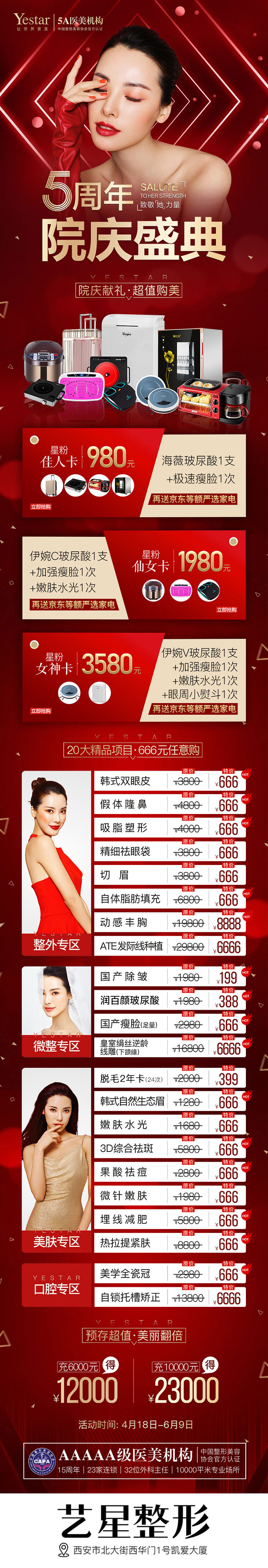 艺星5周年院庆盛典,20大精品项目666任意购,三大超值星粉专属卡,更有预存礼超值翻倍!!!