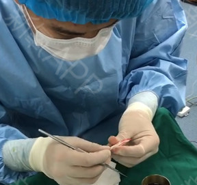 4、根据求美宝宝的需求,雕刻适合的假体,再利用用耳软骨做一个“支架”填充到鼻头,使鼻头更加高挺自然