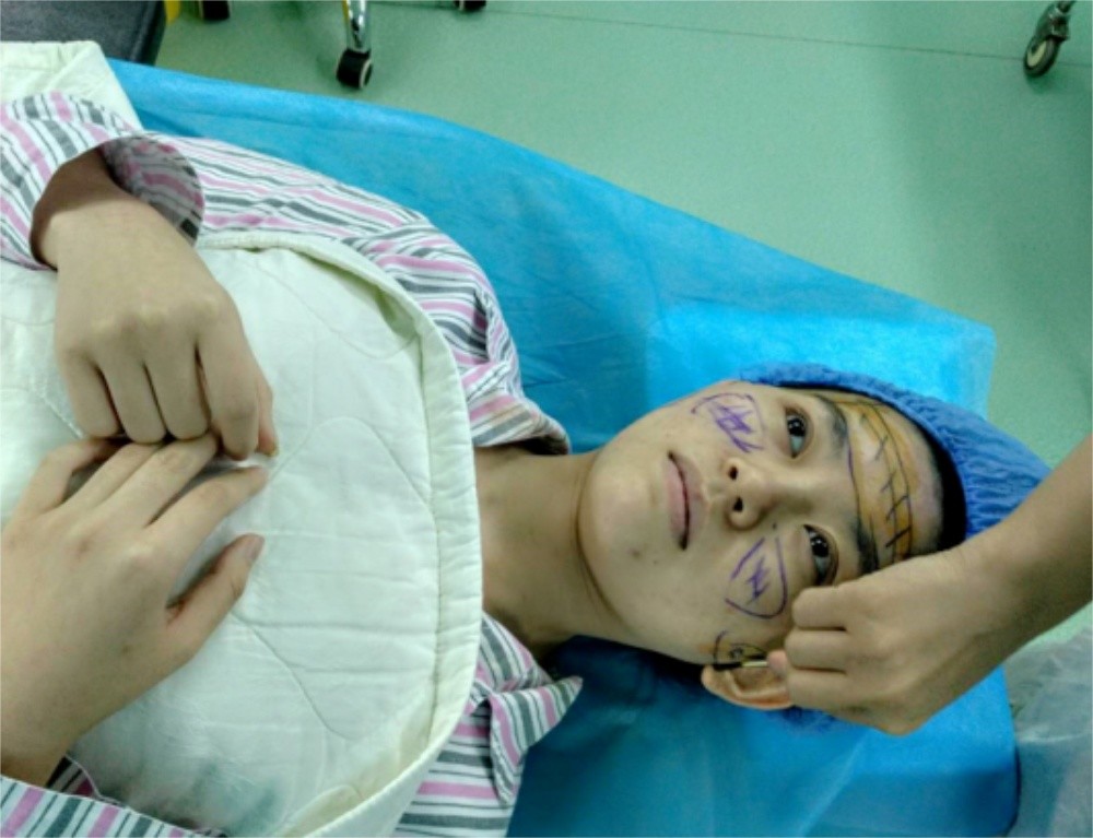 患者25岁,自述觉得自己面部衰老严重,泪沟凹陷增加年龄感,给人疲惫不堪的不适。考虑过玻尿酸填充,但是玻尿酸填充需定期补针,患者自述价格难以接受,而且有轻度晕针症状,不敢注射。