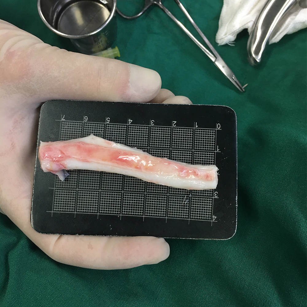 ①在取出肋软骨后,用生理盐水浸泡,这样有利于消除肋软骨的内应力,减少后期弯曲的几率。