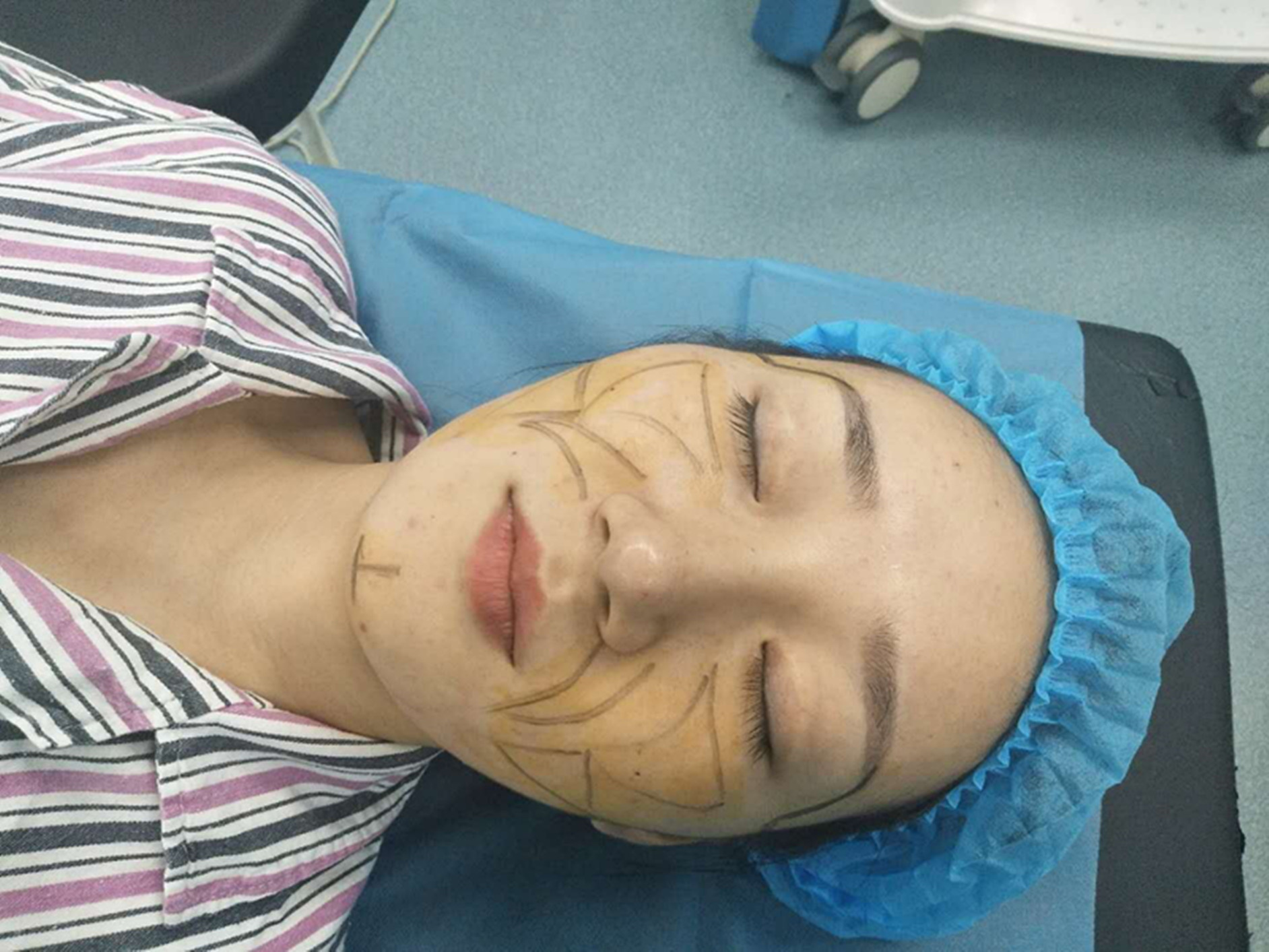 这位患者的全脸需要脂肪填充重铸面部轮廓线,先注射最深层,这样才能有足够的支撑力,让脸变得更加立体。患者一听说使用锐针刺破形成进针点就感觉会很痛,其实,麻醉过程是很舒适的,全麻手术过程是完全不痛的,一觉醒来手术已经结束了。其实远没有你想象中那样可怕,都是可以忍受的范围,术后痛感也会大幅度降低的,所以不必过分担心的。