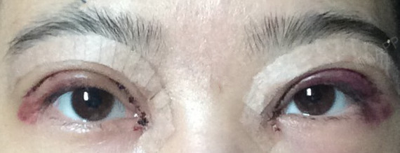 这个是第三天的样子,可以看的出来左眼还是很红肿。。没有淤青,就是红肿。。不知道什么时候才能消下去。。左眼的眼袋很淤青。。不知道为什么。。