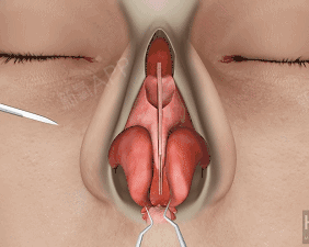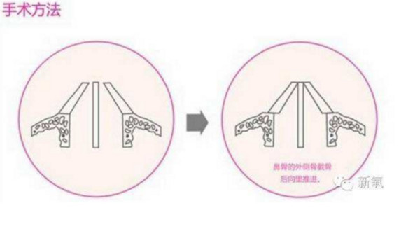 将鼻骨外侧截骨后,再往中央推移聚拢后重新愈合,整过手术过程只需几分钟而已。