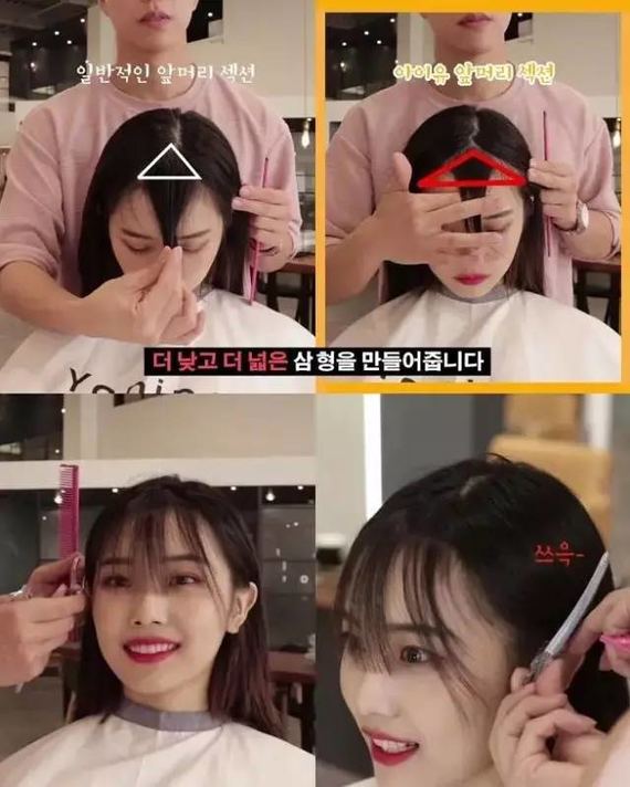 IU这个则是用剪出来的刘海伪装胎毛,这样的刘海更懂得伪装自己,在不经意间填充发际线。