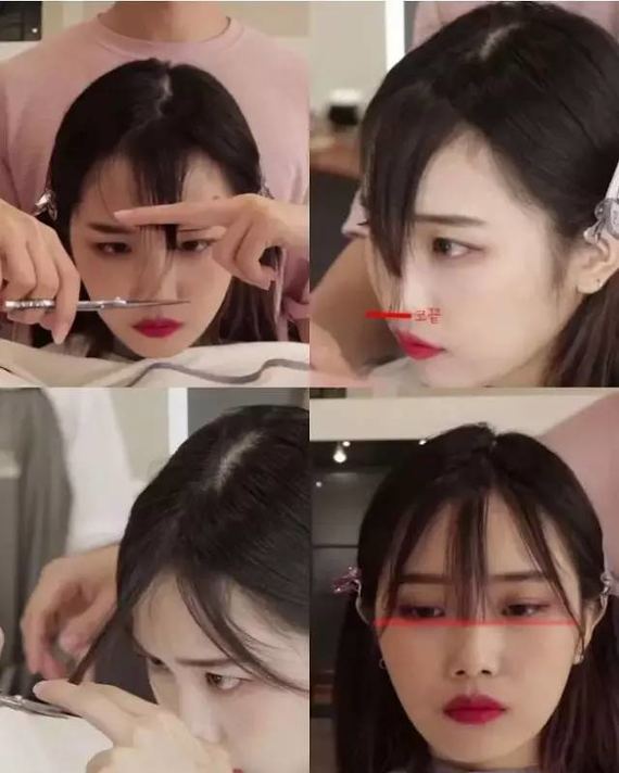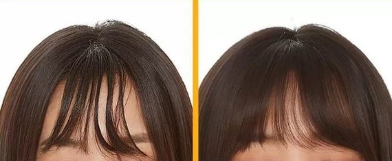 可见,如果用简单粗暴的厚重齐刘海遮挡发际线,会使脸部看起来更加失衡,而且显得没有精气神儿。