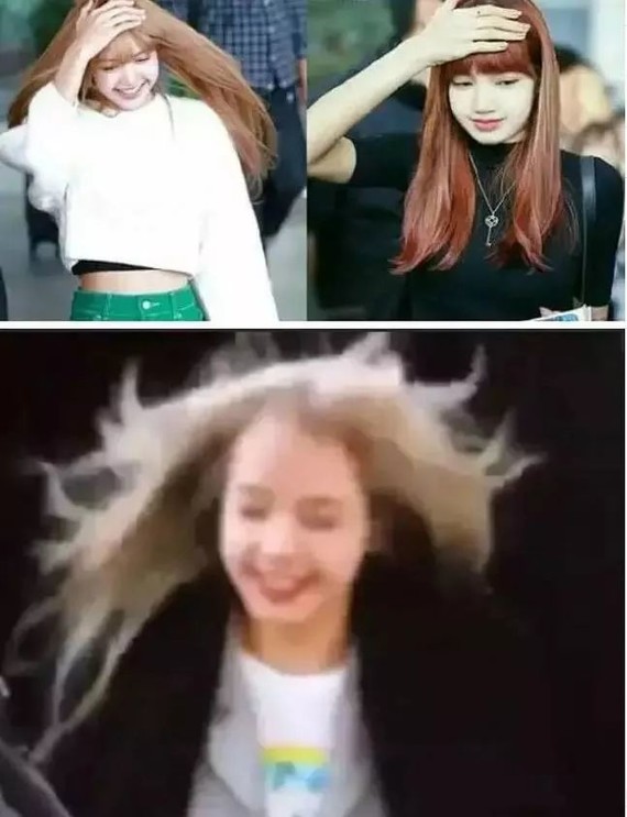 Lisa的额头本来就比较高,加上她的头发常常会被漂成浅色,额头和发根的边界线被模糊掉之后让发际线显得更高。不止会让颅顶看起来比较低,给人一种头发稀疏的衰老之感。