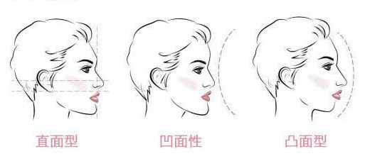 侧脸审美中,站在审美顶端的脸型是直面型,代表侧脸无凹陷,较为立体;凹面性则表现为唇部凹陷,下巴前翘,正面看起来容易显老气;凸面型主要以嘴部突出为主,破坏侧面弧度,略显土气。