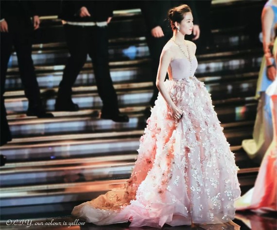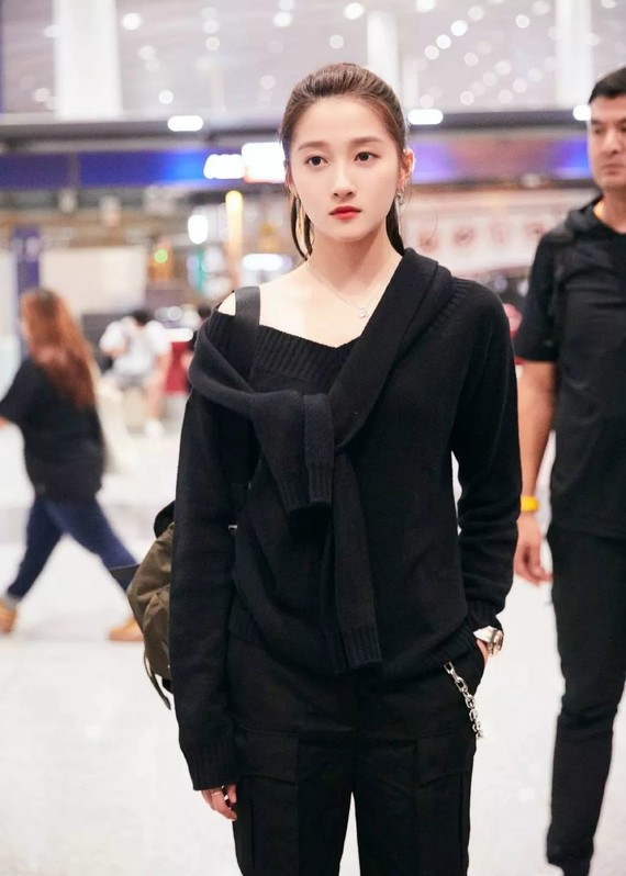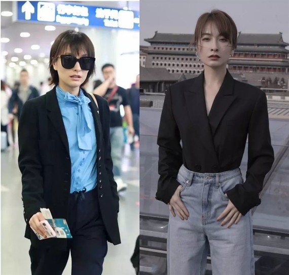 再加上与关晓彤头小身宽,整体比例略微失调,则偏重土气。