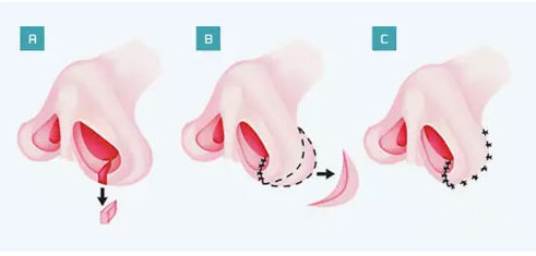 外切缩鼻翼法的优点在于效果明显,可根据不同的鼻翼肥大情况进行处理,缺点是可能会出现不到1cm的瘢痕。