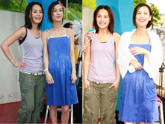 阿娇的官方身高是160cm,业界传闻甚至不足160,黄圣依并没有高她很多。