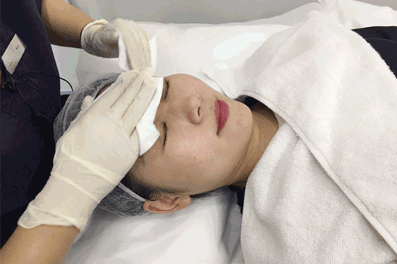 先将患部用特殊清洁剂洗净后,医生用的果酸浓度为10%—20%溶液左右(主要成分为甘醇酸),由额头、鼻子、脸颊、下巴的顺序涂抹,数分钟后喷上中和液,终止甘醇酸的作用,之后再用冰敷以减轻疼痛及发红,接着涂上营养霜即可。