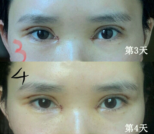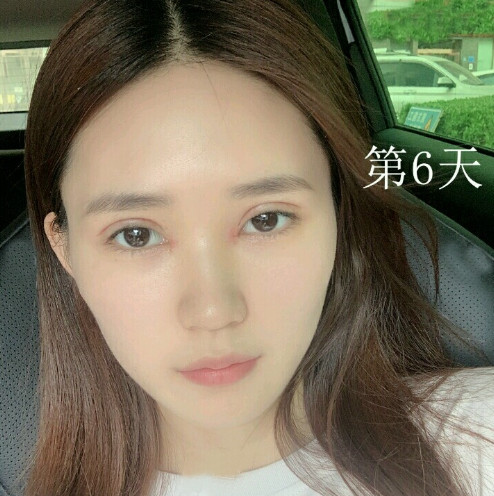 在拆线的时候就不怎么肿了,因为拼图是只有眼睛,看起来比较肿,你看我在车里的那张自拍,那是拆完线回去的时候,看起来还是挺自然的,没那么肿。