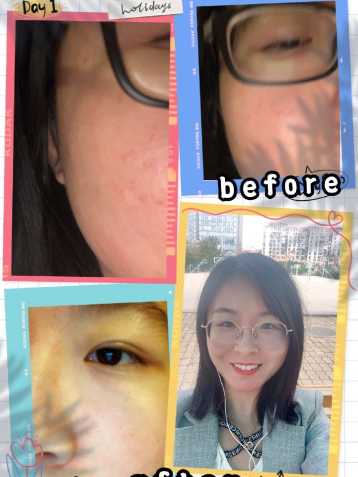 😇皮肤变化:我皮肤很敏感,经常一片一片红,还有一颗颗小痘,尤其是春天来了,再加上天天戴口罩,真的是苦不堪言,而且眼尾和脖颈的皱纹日渐明显,让我这个剩女也很是烦心;💡不吹不黑,莱文医生用了这么久,真的能看到明显的变化,脸真的没那么红了,看不到明显的敏感,没有红肿痒和小痘痘了,感觉像换了层皮一样(哈哈哈,有点儿夸张啦),而且眼尾的皱纹真的有变淡哎,难以想象,毕竟莱文医生药妆出身,成分安全可靠,对敏感肌也很友好,棒!