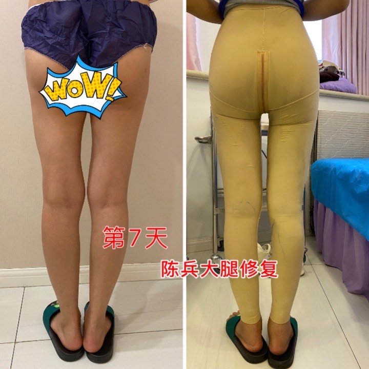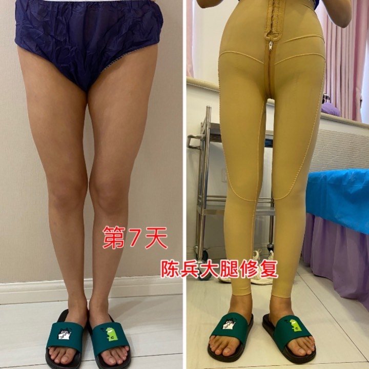 之前一直阔腿裤示人,吸脂第二天出院之后我就去商场买了条紧身裤,还在淘宝买了好多短裤、短裙,再也不用封闭自己了!一个月之后我就可以露腿了,我好开心。