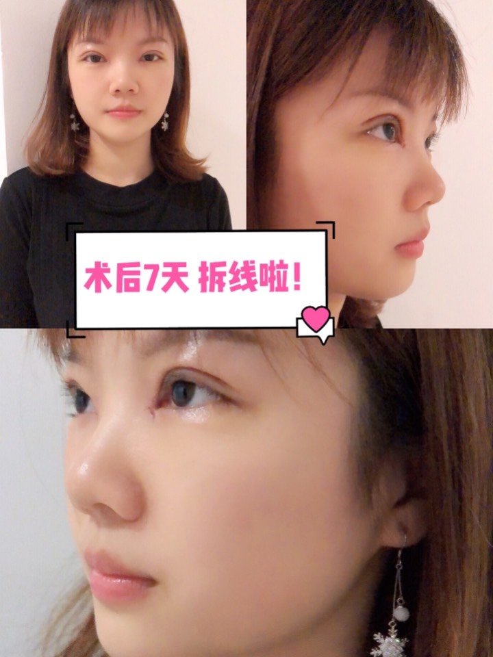 大概一个星期就拆线了,拆完线后脸就可以好好洗洗了,眼睛也轻松了很多,没有了线的束缚,感觉是恢复自由了。#今日新氧女孩