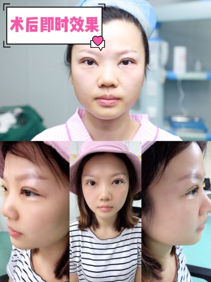 手术比我预想的要快,大概两个小时吧,做的局麻,过程不怎么痛,我还是挺清醒的,还能配合医生睁眼闭眼,让医生可以看到当时的效果,做适当调整。做完手术,医生夸了我,说我配合得很好,手术很成功,让我期待恢复后的样子,嘻嘻~我当时就有点迫不及待,就在手术室让护士小姐姐帮我拍了照,要看看双眼皮的样子。刚做完的双眼皮并没有很恐怖,没有充血,也没有很肿,眼周已经清理得很干净了,双眼皮的形状很漂亮。我看到很多做了双眼皮的案例都要包纱布,但是这里不用哦,感觉是不是医生技术好的缘故,总之不包纱布比包纱布好,包着纱布肥家肯定要被人注目,额~想想就汗!!