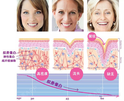 我们肌肤的真皮层中有两种蛋白:胶原蛋白和弹力纤维蛋白,它们支撑起了皮肤使其饱满紧致。25岁后,这两种蛋白由于人体衰老进程而自然地减少,细胞与细胞之间的纤维随着时间而退化,令皮肤失去弹性。