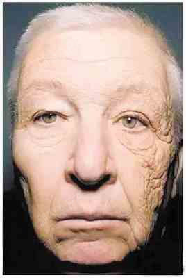 (美国芝加哥一货车司机常年左脸靠近车窗朝向太阳,左脸皱纹更多,更松弛。)