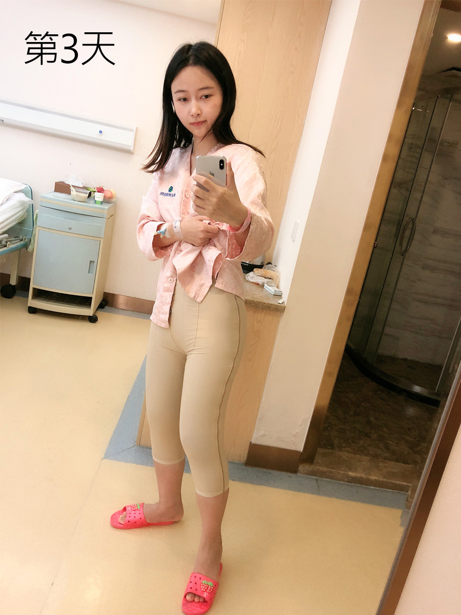术后第7天:穿着塑身衣有点不习惯,但是大腿慢慢消肿了,离纤细美腿越来越近了。