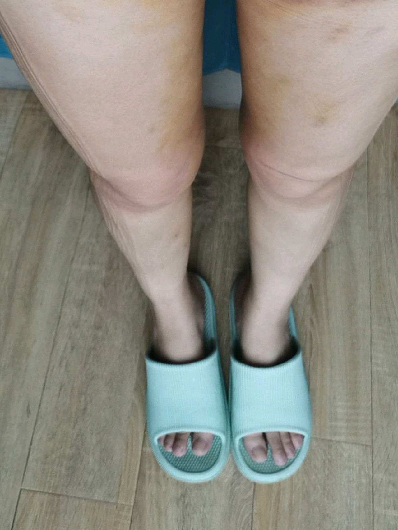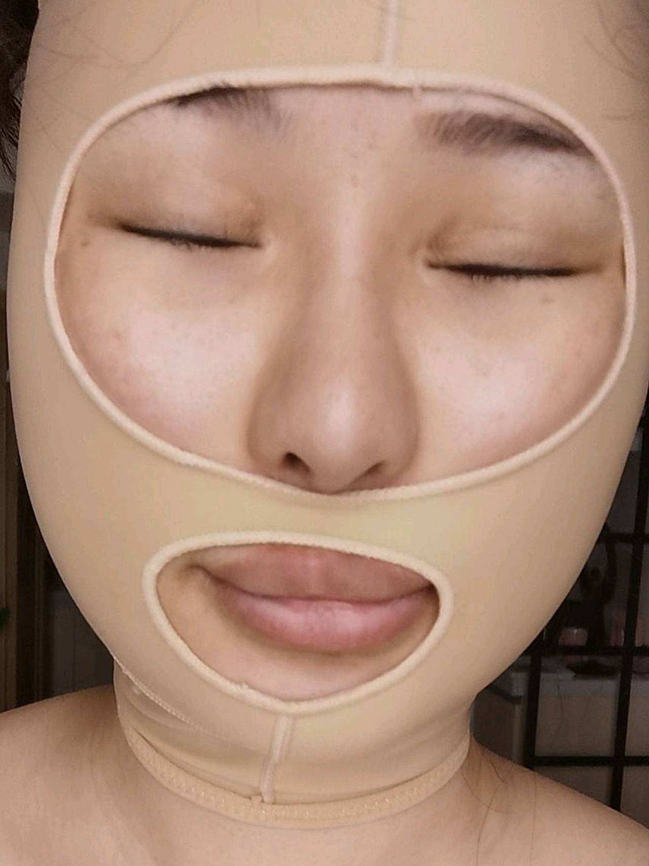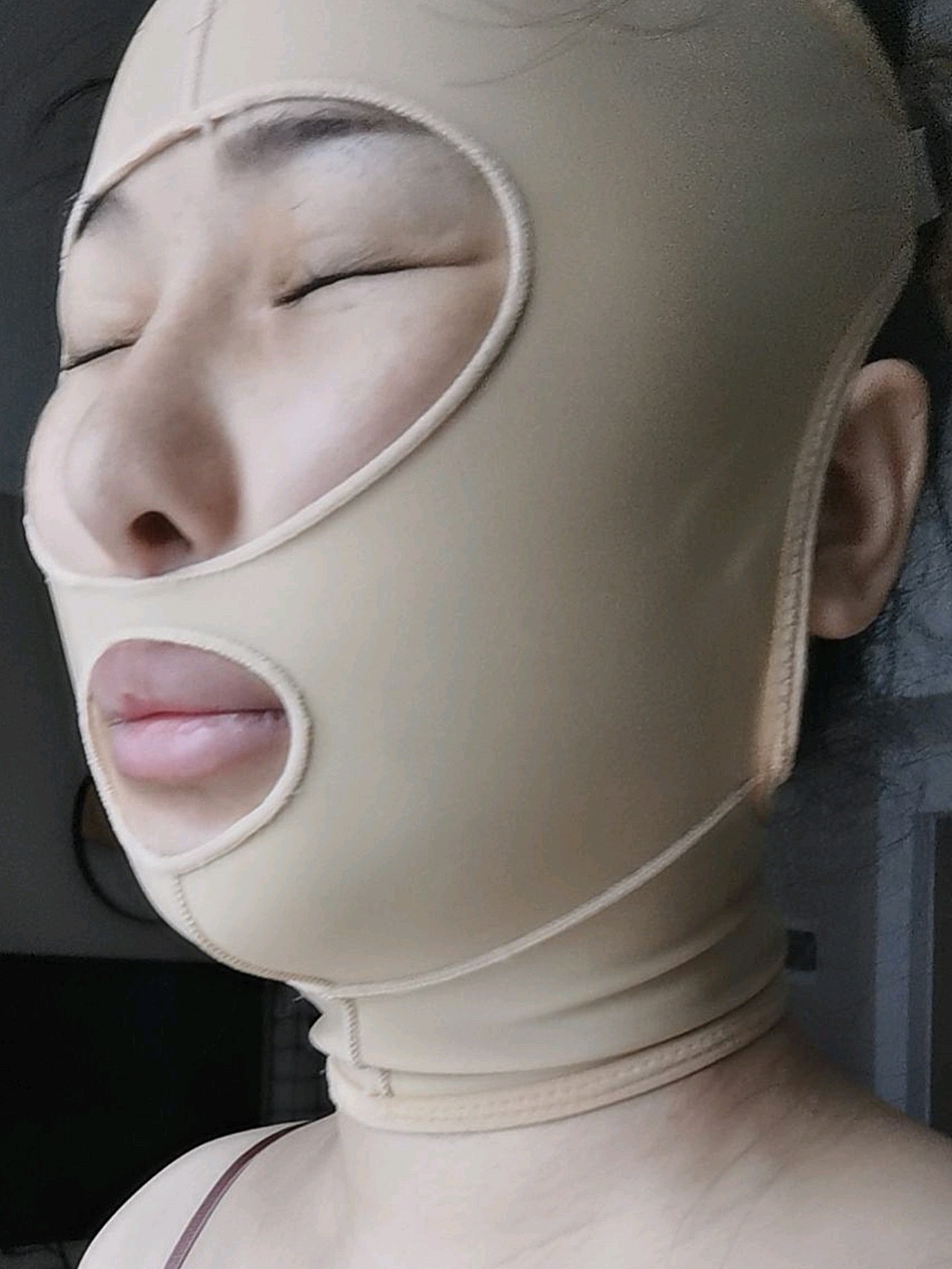 大概是头套弹力太好,总感觉带上头套后脸被压缩成一个粽子,肿肿的膨胀了。但是没办法该佩戴就佩戴,该忌口就忌口。脱了塑身服之后身上淤青还是蛮明显的,看着有点吓人,但是医生说过段时间就会自然消散的,不过身上是肿胀得非常严重,最满意的是腰腹和大腿,感觉瘦了好多啊,虽然现在还在恢复期,但是我觉得恢复之后身材肯定很不错的。