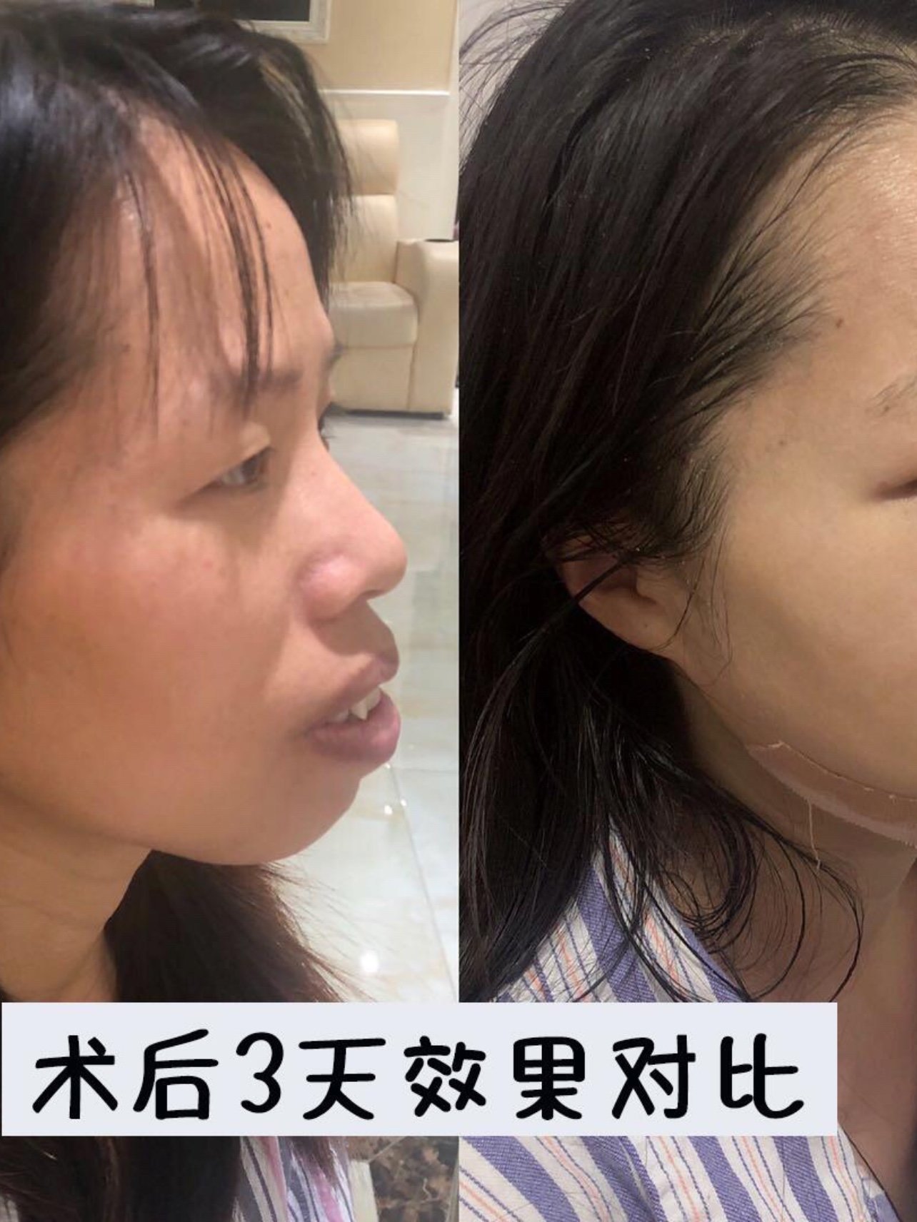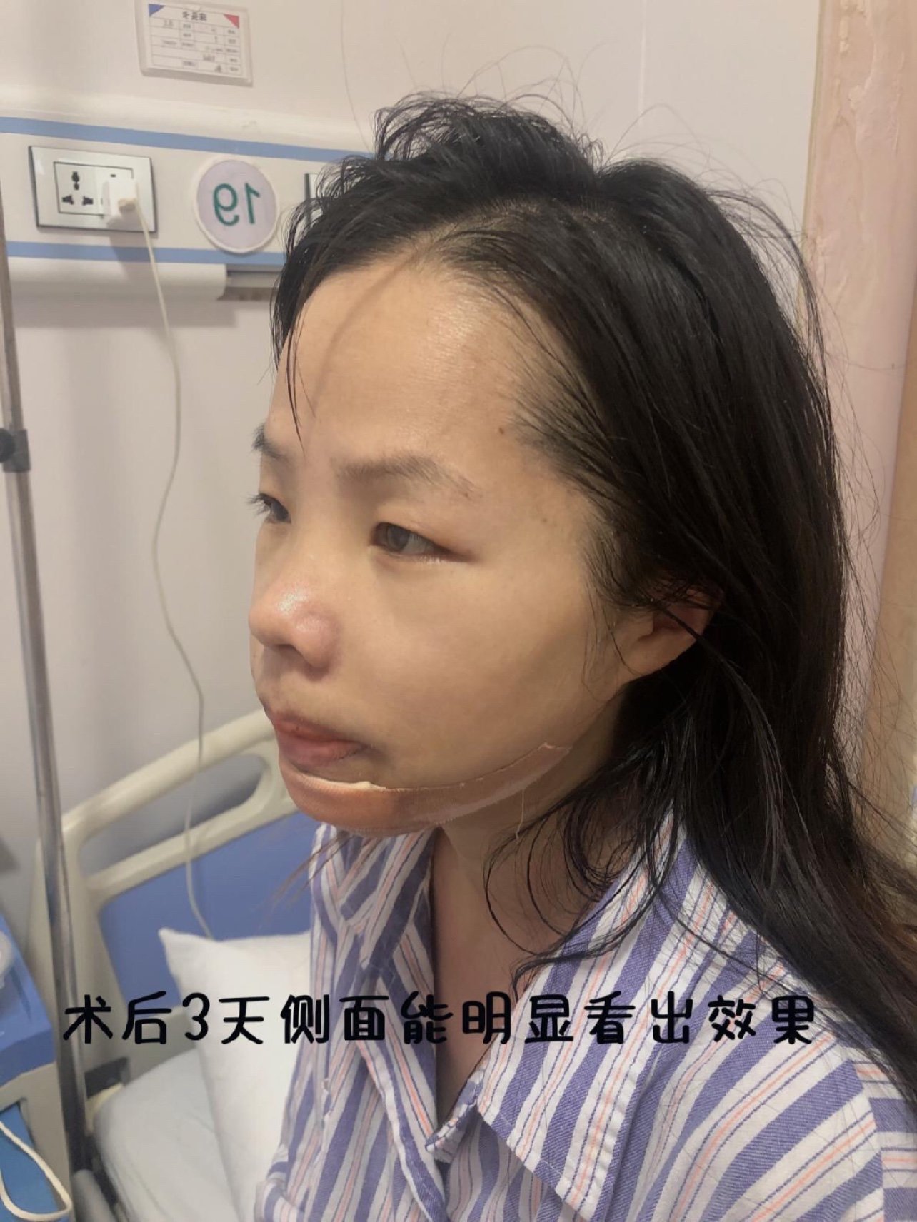 🌚🌚手术当天我还是很忐忑的,毕竟是在自己脸上动刀,手术是全麻的,没什么痛感,就肿得像个猪头。