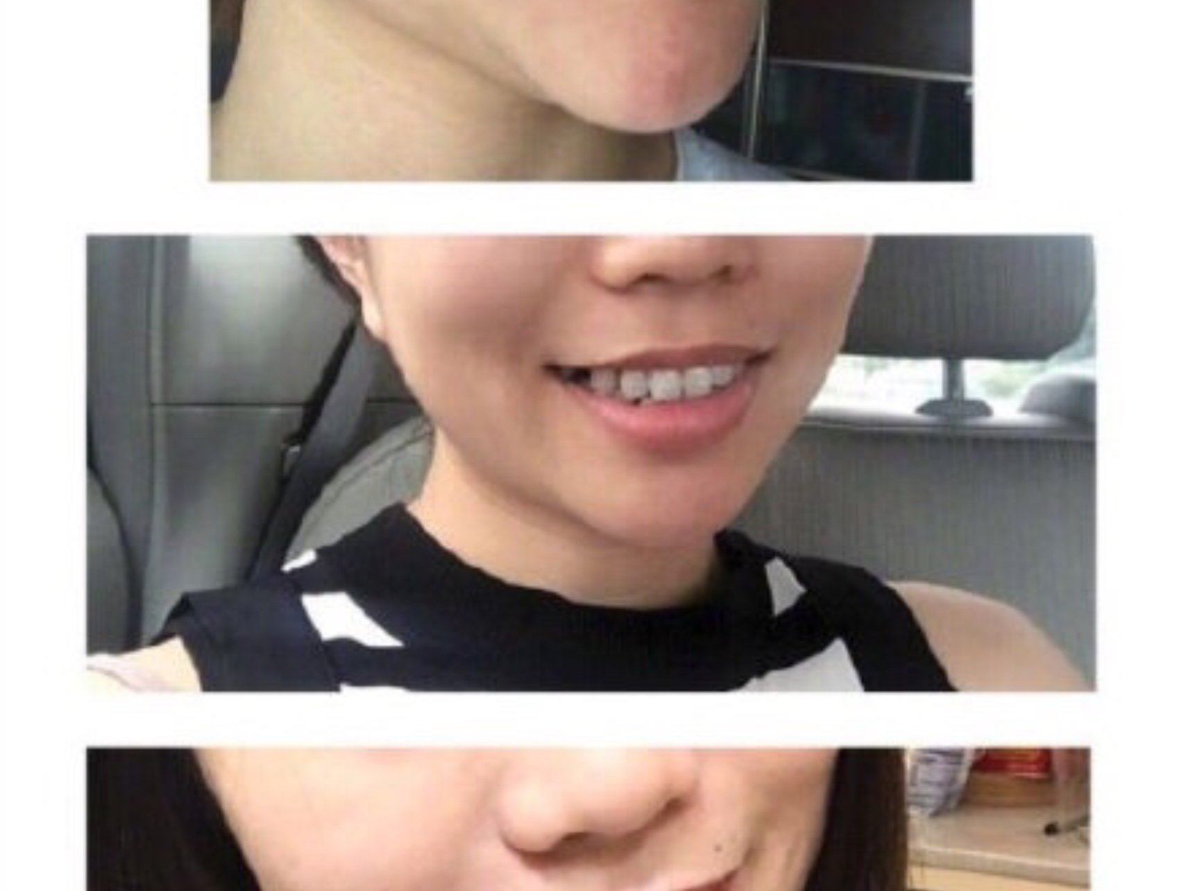 女孩主诉嘴突没有下巴,检查发现轻度骨性前突,牙齿拥挤且牙弓狭窄,还有牙龈炎。我为她设计方案是拔除4颗4号牙,配合支抗钉排齐内收前牙,关闭拔牙间隙。两年的矫正时间,牙齿排齐内收前牙,面型轮廓精致立体