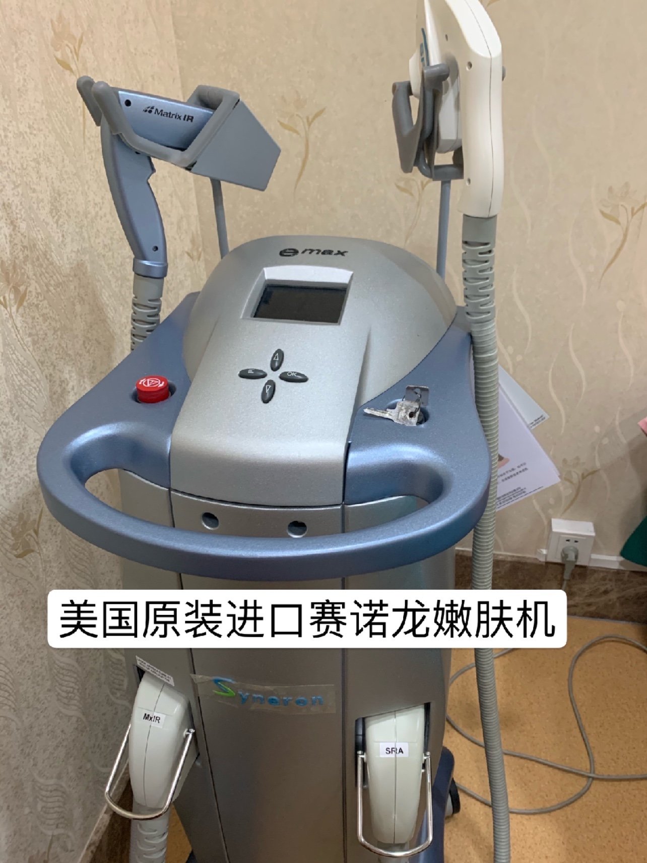 3⃣️机器介绍🌟机器是美国原装进口的赛诺龙EMax嫩肤仪,护士姐姐介绍说是比M22还好😏这款仪器有四个不同的治疗探头,利用不同的波长强脉冲光照射皮肤,不同的光段能有效处理不同的皮肤问题。第一个是SR模式,它主要是美白去黄去红血丝。第二个是ST模式,主要是紧致提升,第三个是AC模式,主要是祛痘印,消炎,缩毛孔,控油镇痛。第四个是IR模式主要是抗皱紧肤。这次医生帮我用的是全模式的。