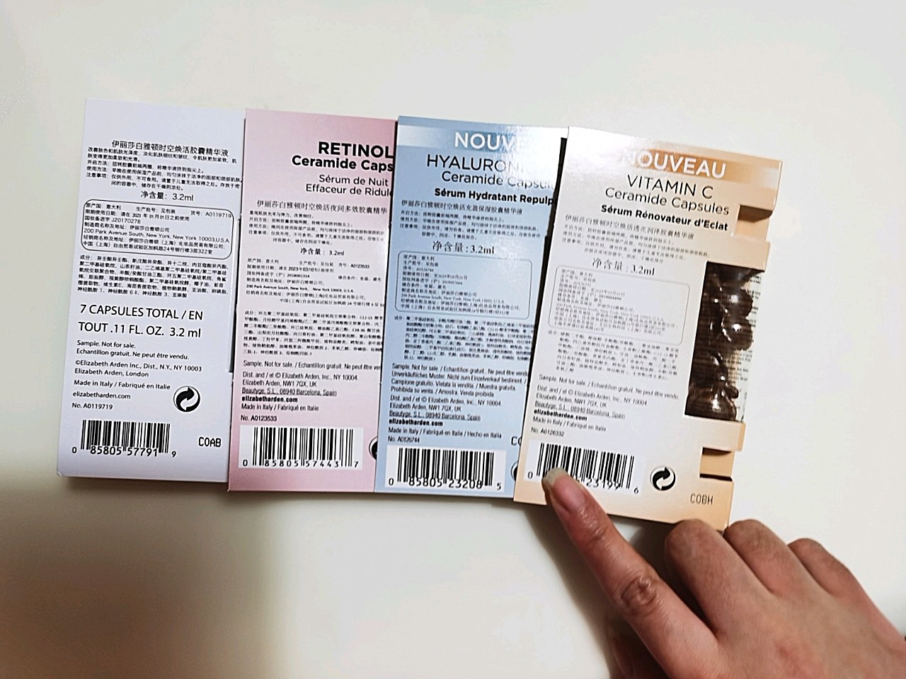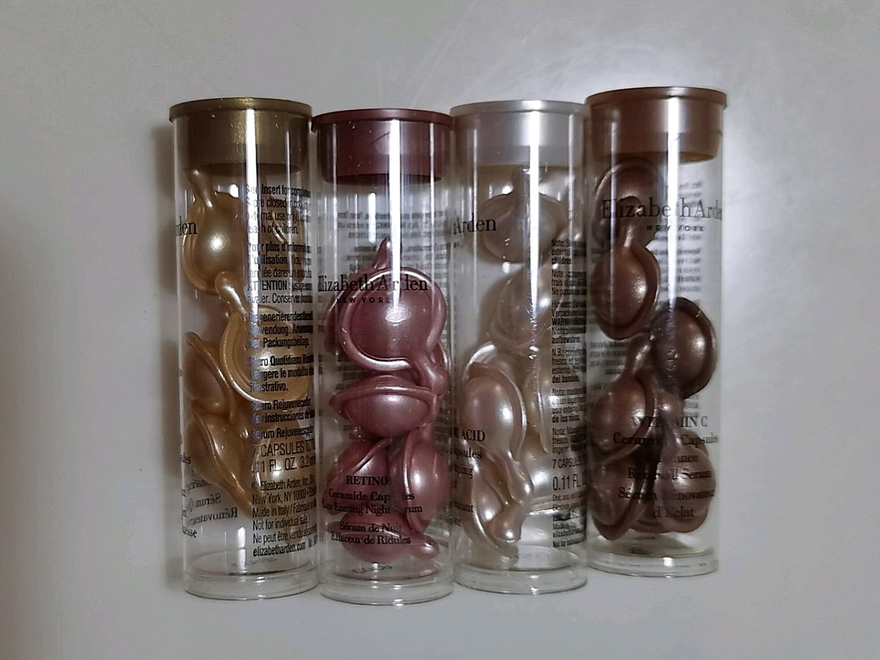 这次新氧体验的是伊丽莎白雅顿的四大经典胶囊精华:金胶,银胶,粉胶和含维他命C的时空焕活透亮润泽胶囊精华液,我姑且叫它小金胶吧(对不起,起名废😭)。