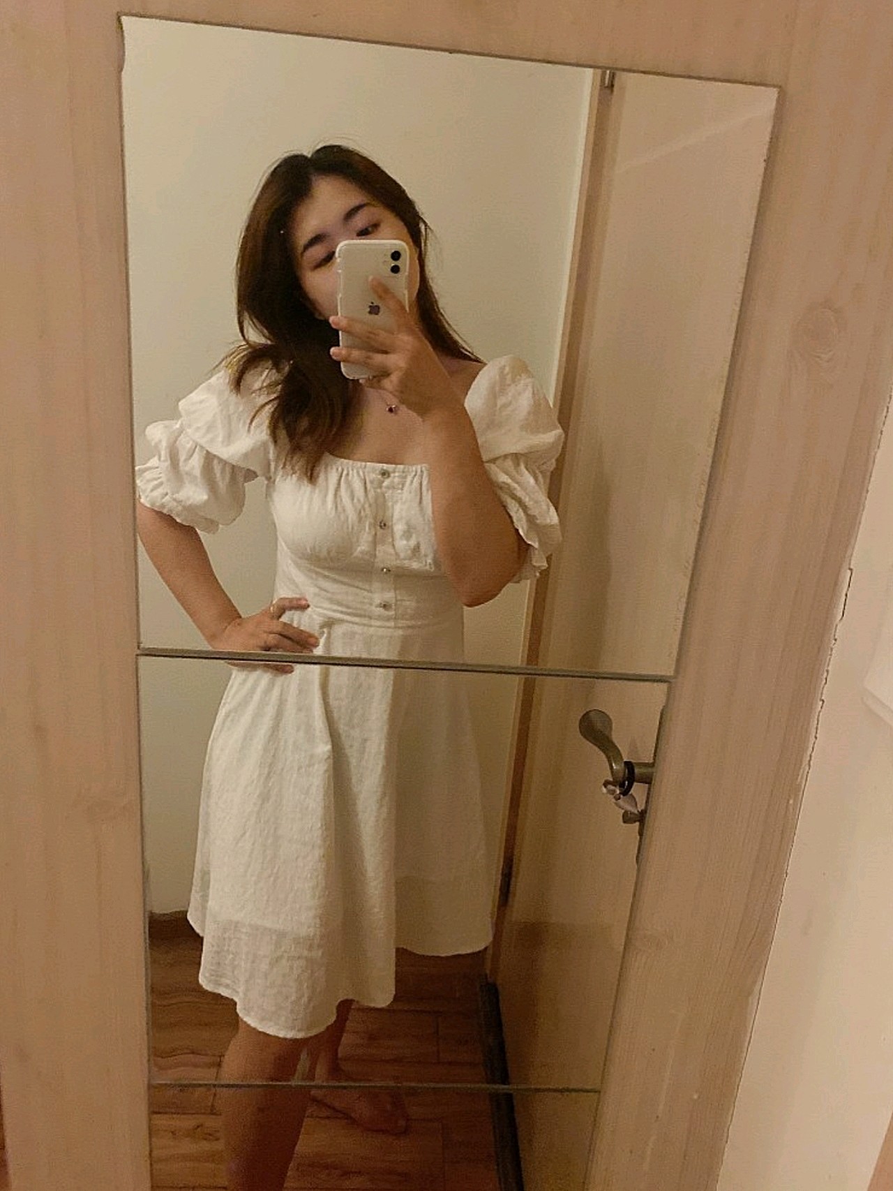 虽然现在外面比较冷,但是在家里面有开暖气,就随便怎么穿啦,这种宫廷风的连衣裙我终于敢尝试啦,以前因为我胖从来都不敢穿,现在做了吸脂之后我是什么都敢穿了,效果超满意的,甩掉了我的大肚腩,很开心。
