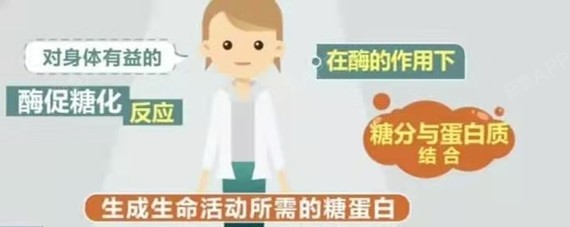 糖化,全称叫做「非酶糖化反应」,指还原糖(如葡萄糖)在没有酶催化情况下,与蛋白质、脂质或核酸在经过缓慢的反应后,终生成一系列的晚期糖化终末产物(AGEs)的过程。