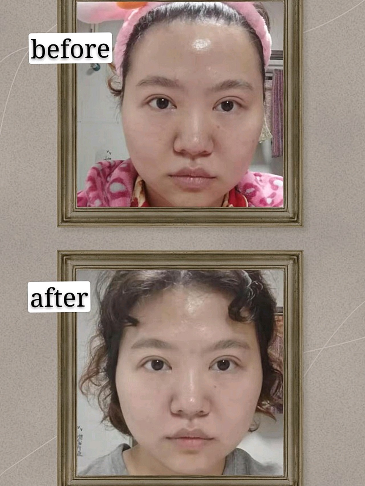 最后,大家可以看一下对比图,正脸看上去区别不大,本来也没有什么下垂。