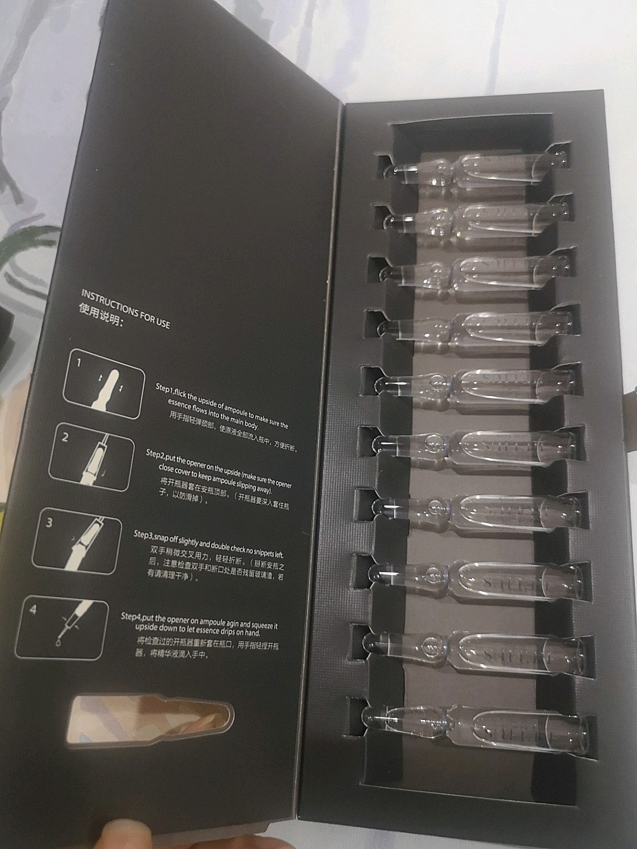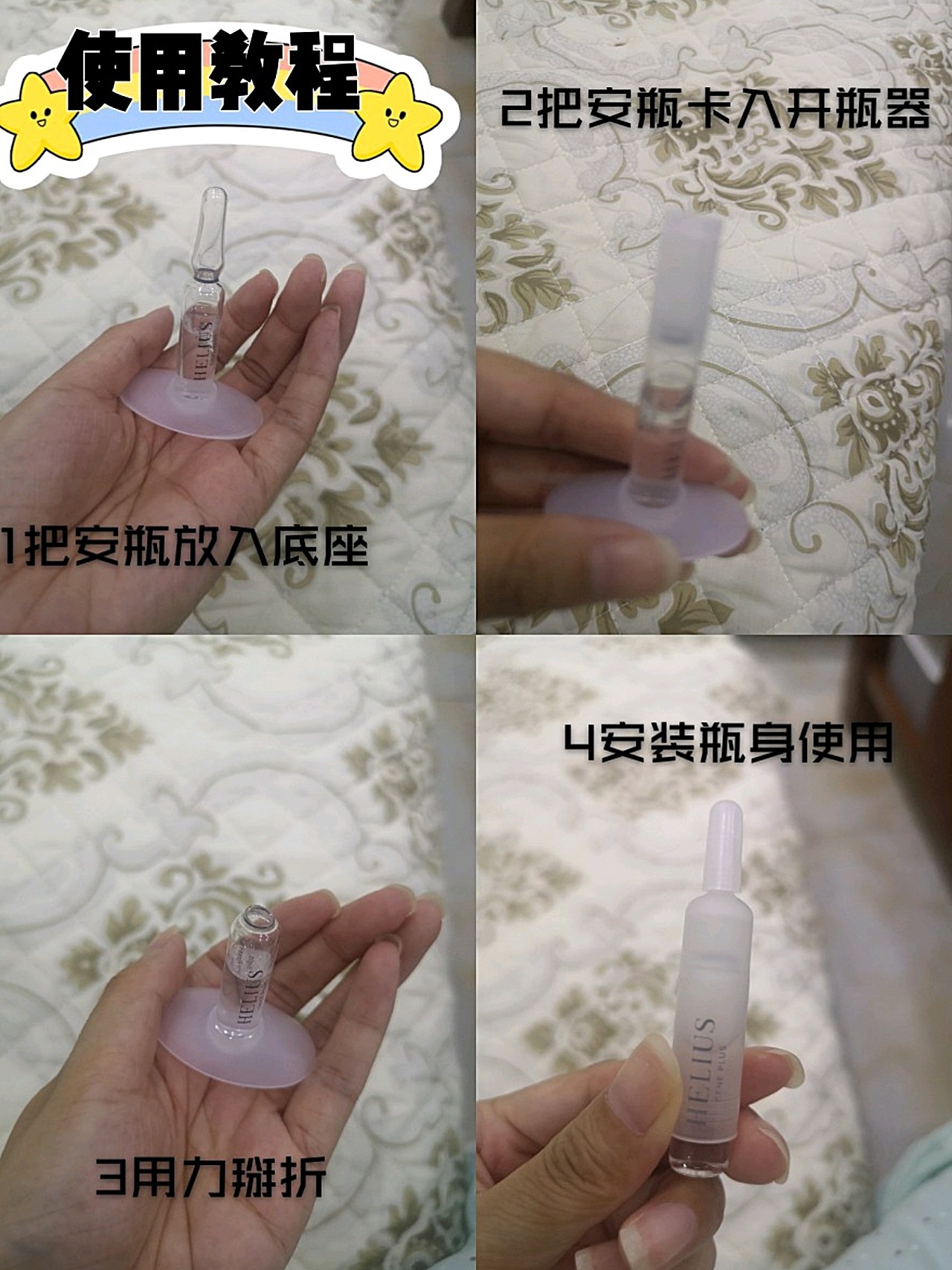 安瓶的开瓶方法我专门发了图,大家如果不会,也可以看下开瓶器袋子的背面,和安瓶盒子的里面,都有教程的!