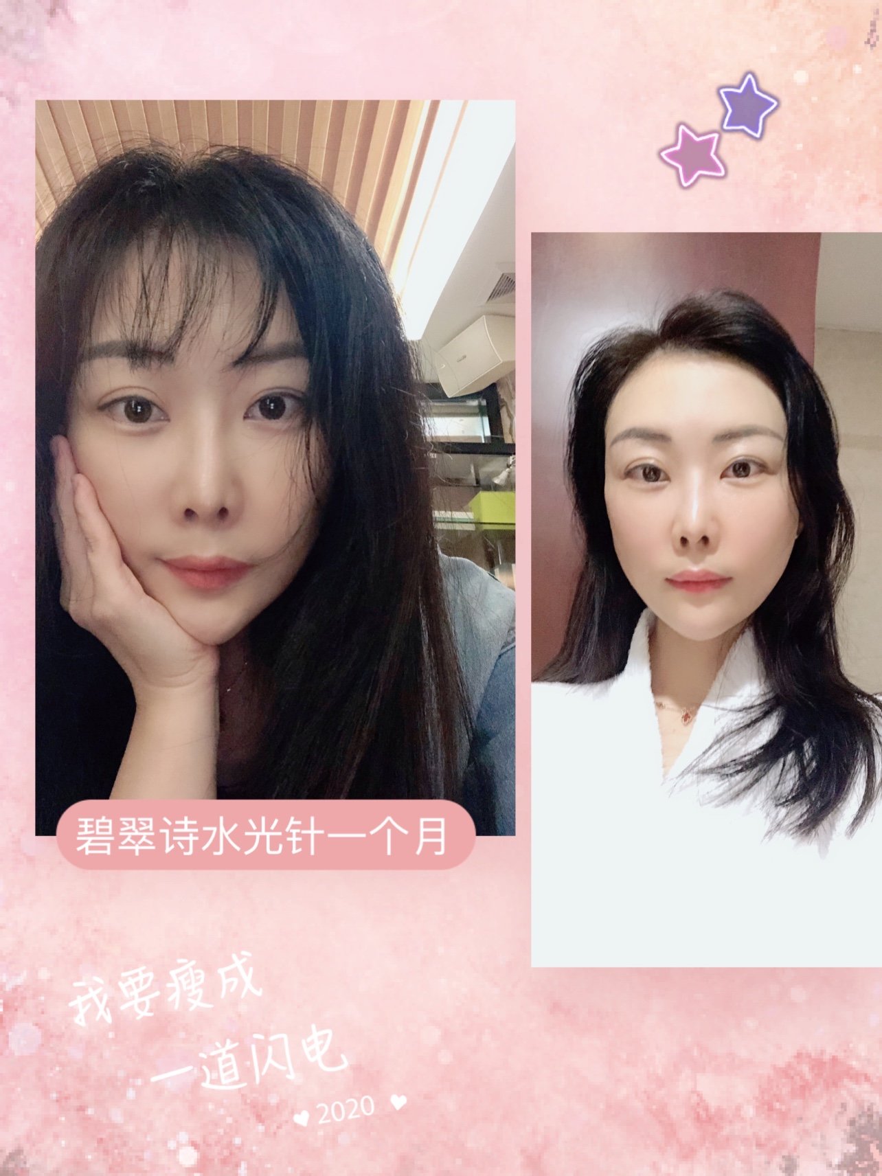 看对比照片还是那么水嫩、油亮油亮的,一个月坚持一次持续保持下去。体验官活动的瘦脸针、肉毒可以跟上哦,就更全面了。