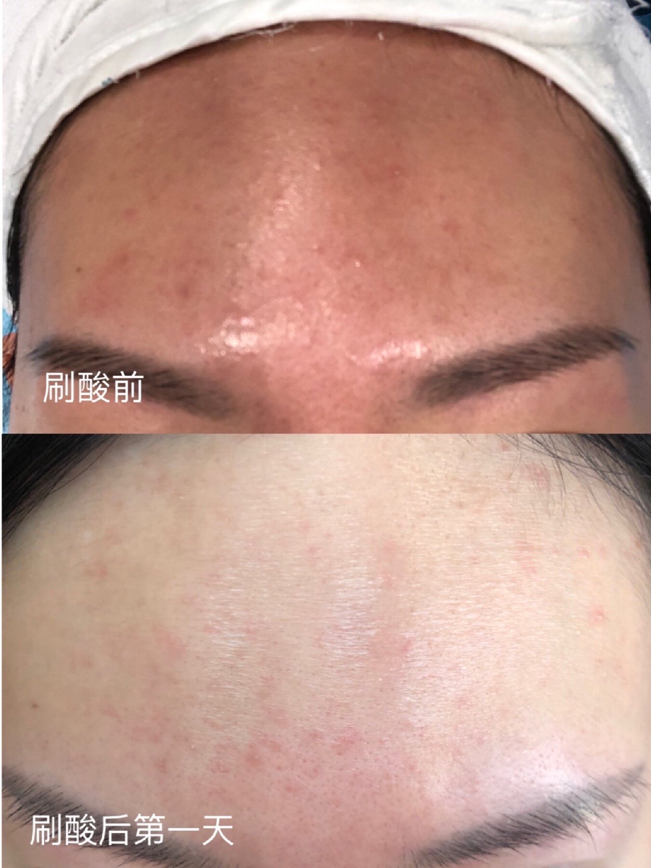 🌟刷完酸第一天比较明显的感觉就是整体出油变少了。可能因为护士姐姐这次下手比较轻,所以脸没有特别干的感觉。期待过两天的效果!