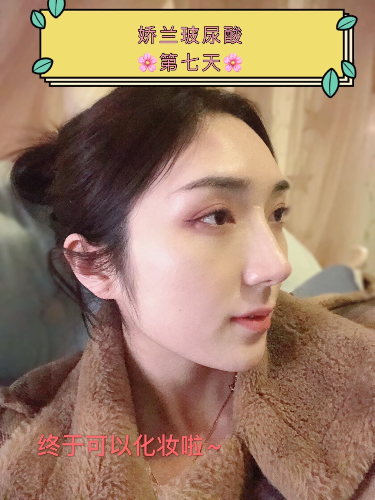 🌸玻尿酸有高倍吸水性,所以术后有两三天会出现肿胀,打的部位还有酸酸的感觉~过了肿胀期就可以正常洗脸护肤啦,为了稳妥起见,我是第七天才开始第一次化妆。