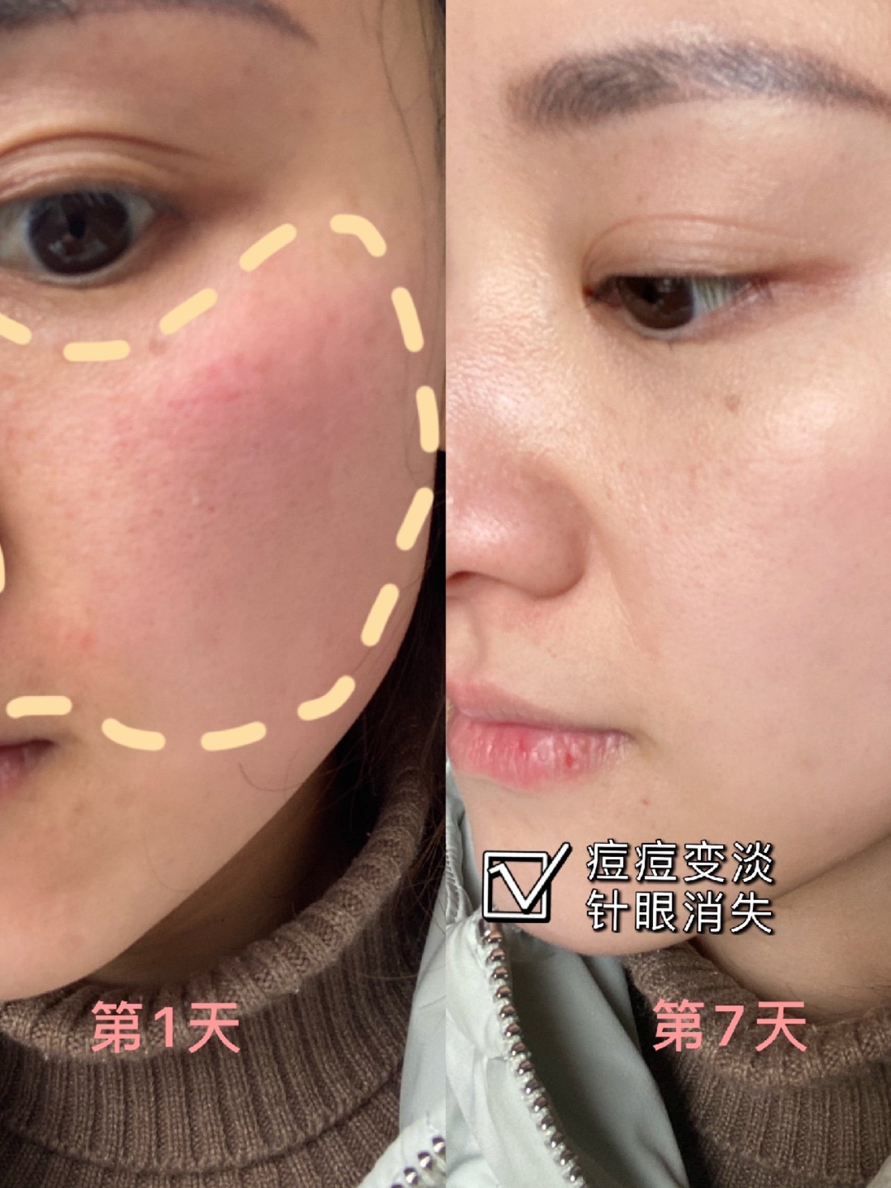 ⭐⭐ 刚做完的当天肌肤是泛红的 针眼明显,特别是两颊和鼻子下方