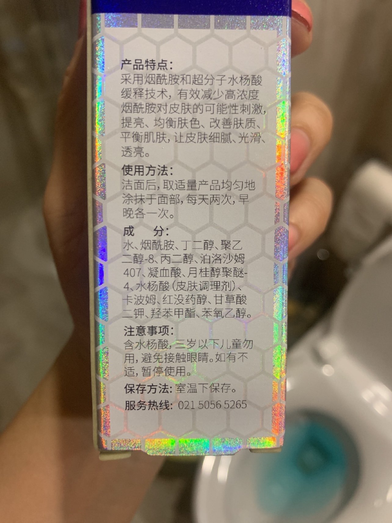 6、成分使用感受,味道很淡没有skii那种浓烈口水味,没有人造香味,没有普通刷酸的疼痛感,非常舒缓温和,10%烟酰胺 3%传明酸 1%水杨酸三重净白成分完美搭配,在精华中算是3d净白全能选手;