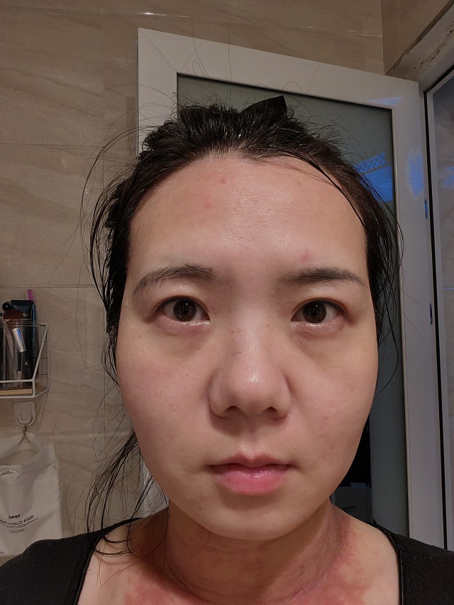 大家可以看第一张的图片对比,能明显看出皮肤的光泽度变好变水润通透。同时。脸上的红血丝和痘印也少了。