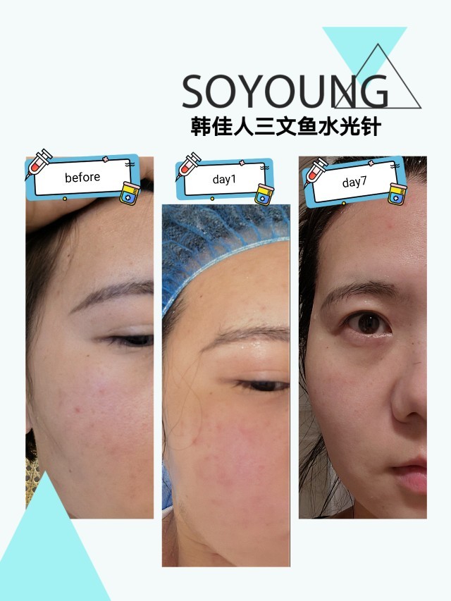 首先,注射完之后,当天我只敷了水光针附赠的面膜,一直到第二天晚上才敷第二次面膜,但是当天,我没有觉得之前第一次注射某水光时那种拔干的感觉,一整天皮肤都很舒适。第三天正常洗脸,然后又连续贴了2天医用面膜。就按正常护肤了,皮肤没有任何不适,而且每年春季换季皮肤就会有些敏感起小豆豆的情况,也没有了。