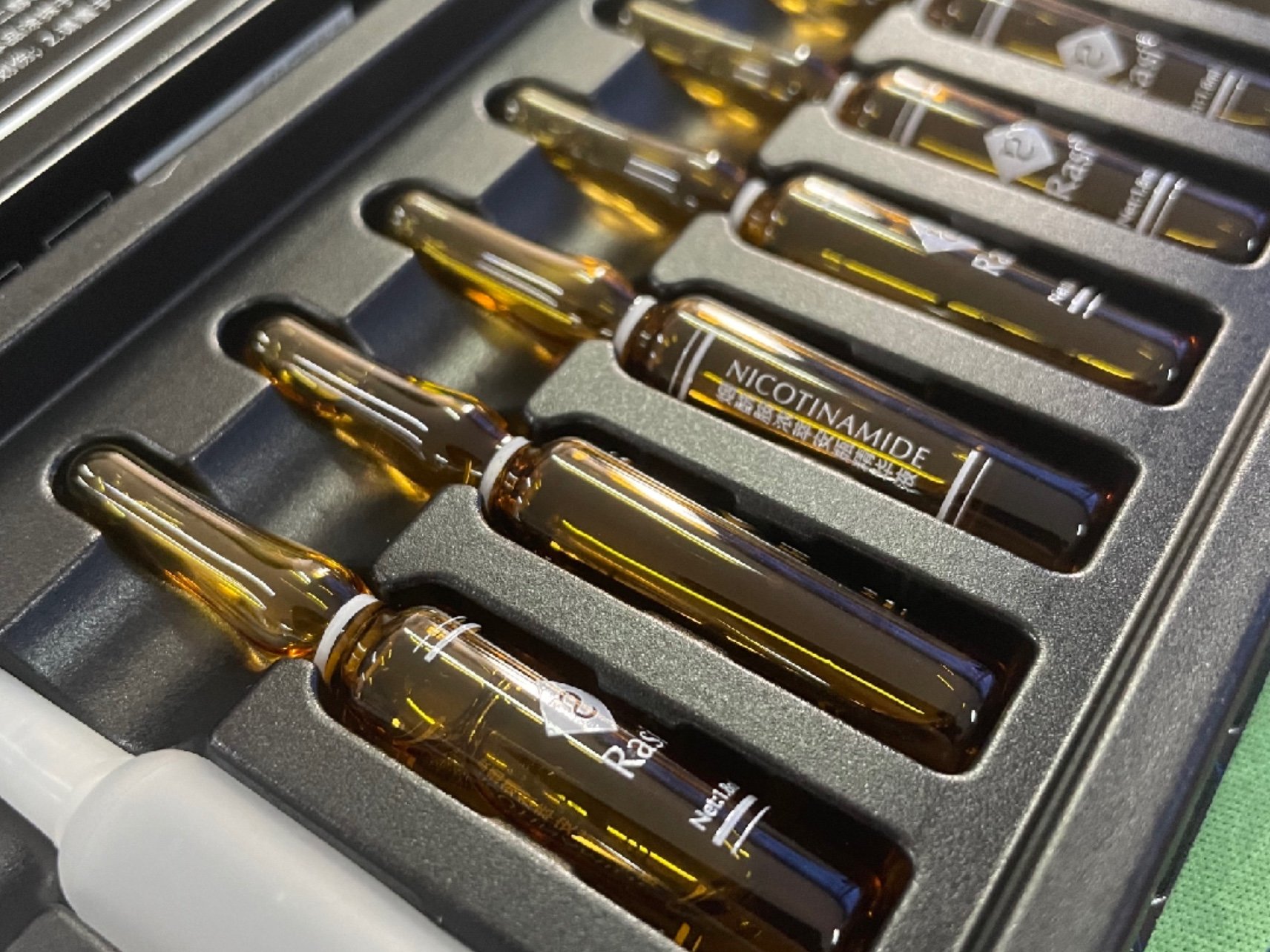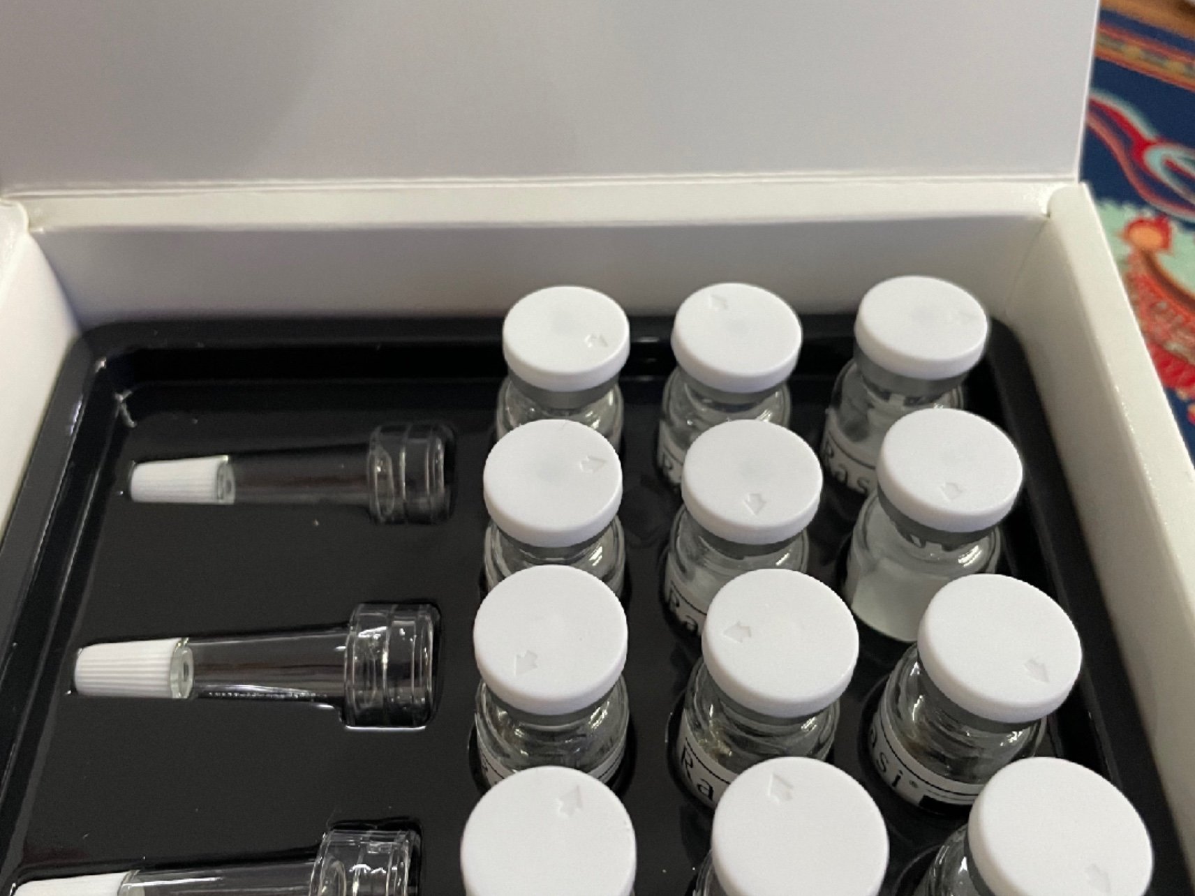 体验后效果:使用过程真是仪式感满满的!各种小瓶瓶!一开始没掌握好方法,手抖了一下,传明酸溶解液撒了一半,心疼,滴血!一定不要浪费啊,姐妹!烟酰胺安瓶很好开,也好取用,自配密封套,方便保存!维C粉的霜化触感简直神奇,太喜欢了!倒的时候注意不要打喷嚏,别问我怎么知道的!