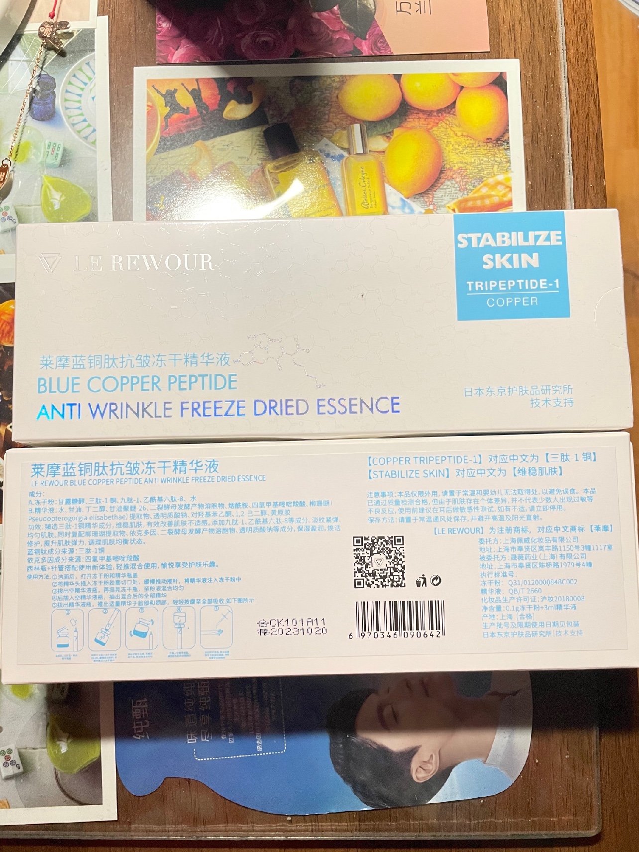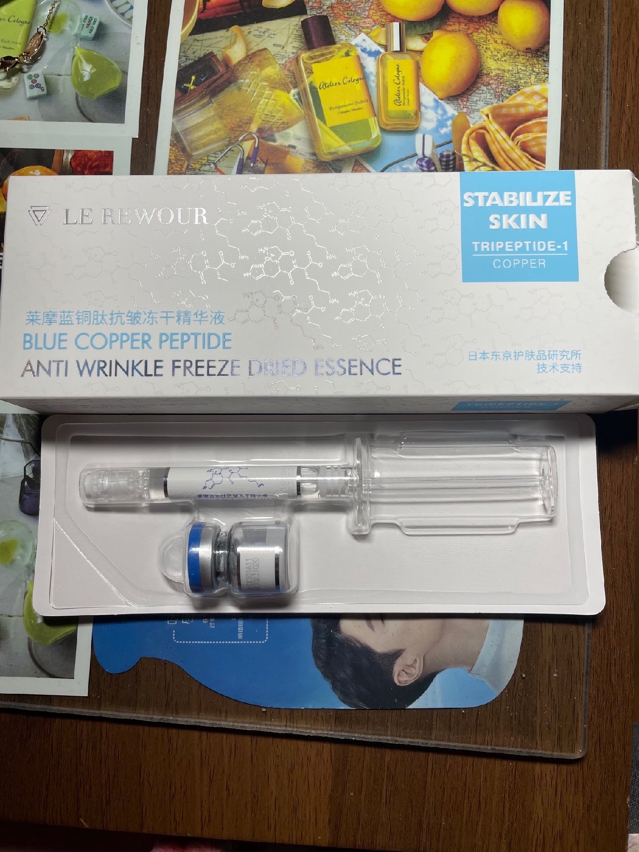 🌟🌟🌟产品成分:莱摩蓝铜肽冻干精华液纯度达98%的蓝铜肽。蓝铜肽是超级高效的抗衰成分,同时还有二裂酵母和柳珊瑚提取物,这真的是在抗老的同时还可以促使我们的皮肤进行舒缓更能修护我们的皮肤屏障。它可以焕亮肌肤,阻断黑色素生成,使肌肤保持光感透明态,产品非常安全,并没有添加任何防腐剂,是敏感肌或者受损肌肤都可以放心使用!