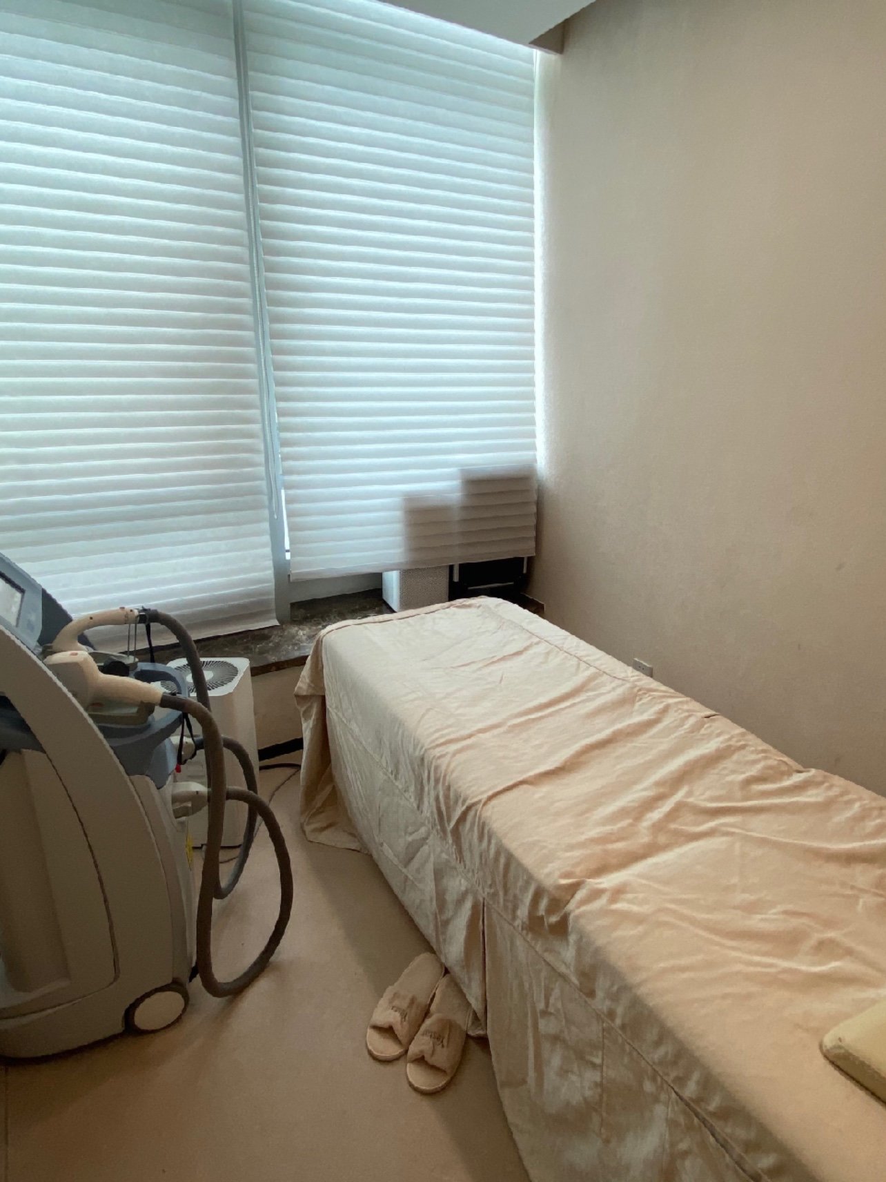 项目体验过程:客服和操作人员小姐姐都特别温柔,让我今天先做脱毛。开始操作啦, 小姐姐先帮我把毛发都刮掉,再用仪器操作。因为我皮肤比较干,打完冰点脱毛后皮肤有点痒,小姐姐还帮我冰敷涂抹身体乳了