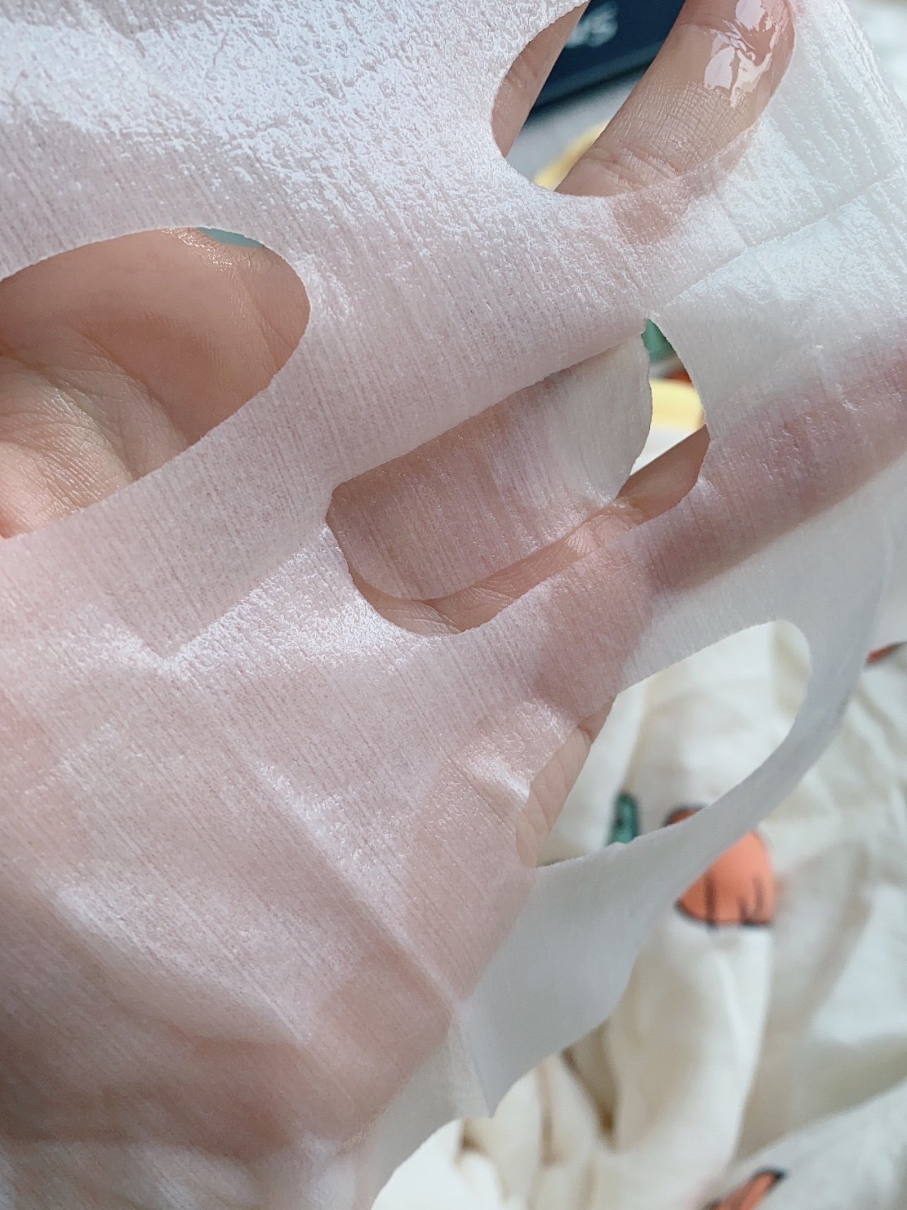 项目体验过程:好啦,话不多说,现在就请出我们的主角虞芙妮透明质酸敷料,打开后可以看到精华液非常清爽,易流动,上脸水状感明显,无油腻感,非常清爽,膜布是无纺布的,不算薄,但是不厚,贴合度还不错,算满服帖了的了,没有酒精等其他添加剂,不会感到刺激,也没有味道,敏感肌可以放心入。