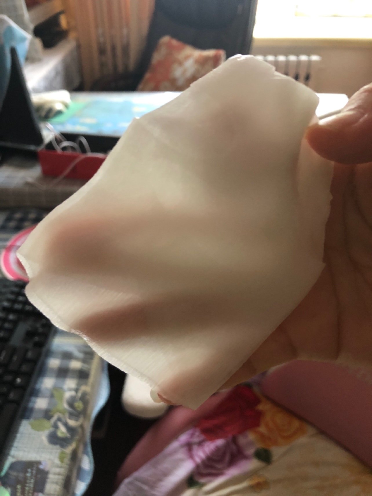 🤍面膜质地:虞芙妮家的面膜质地还是很不错的,不会特别软一拉面膜就走形了,也不会特别硬,软硬适中刚刚好👌