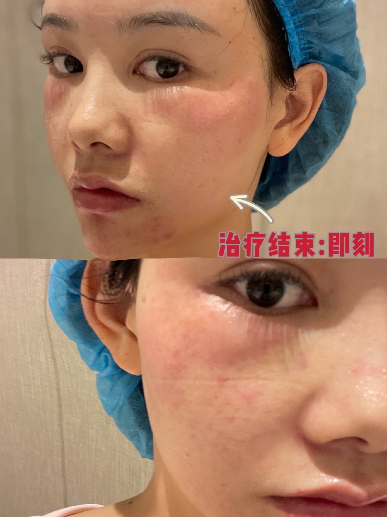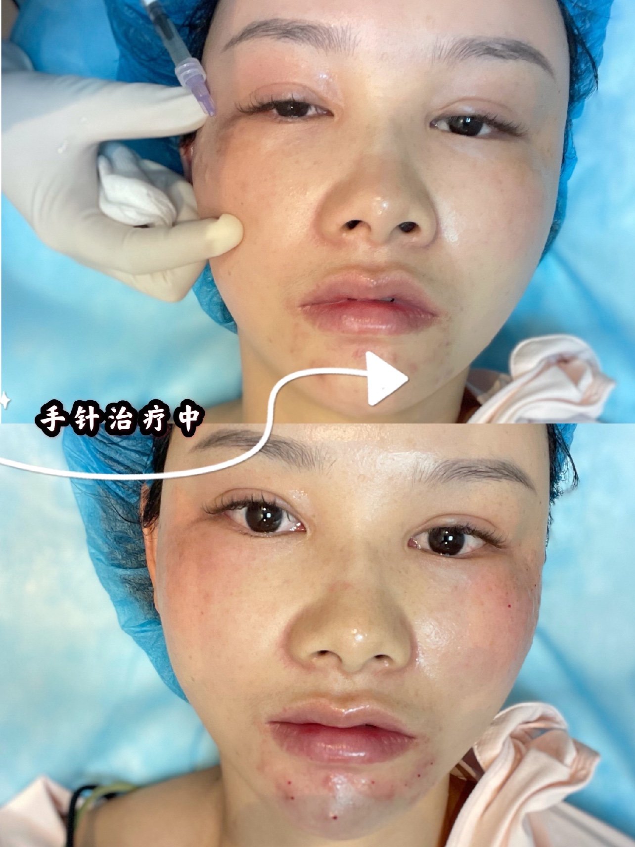敷完麻药就会到皮肤治疗室去等医生来操作,因为我的局部斑点色沉比较明显,医生先给我局部手针注射,在全脸机打,说真的手针真的好痛,因为这款(英诺退黑素)里面含有VC对皮肤会有一定的刺激性,所以疼痛感会比较明显。