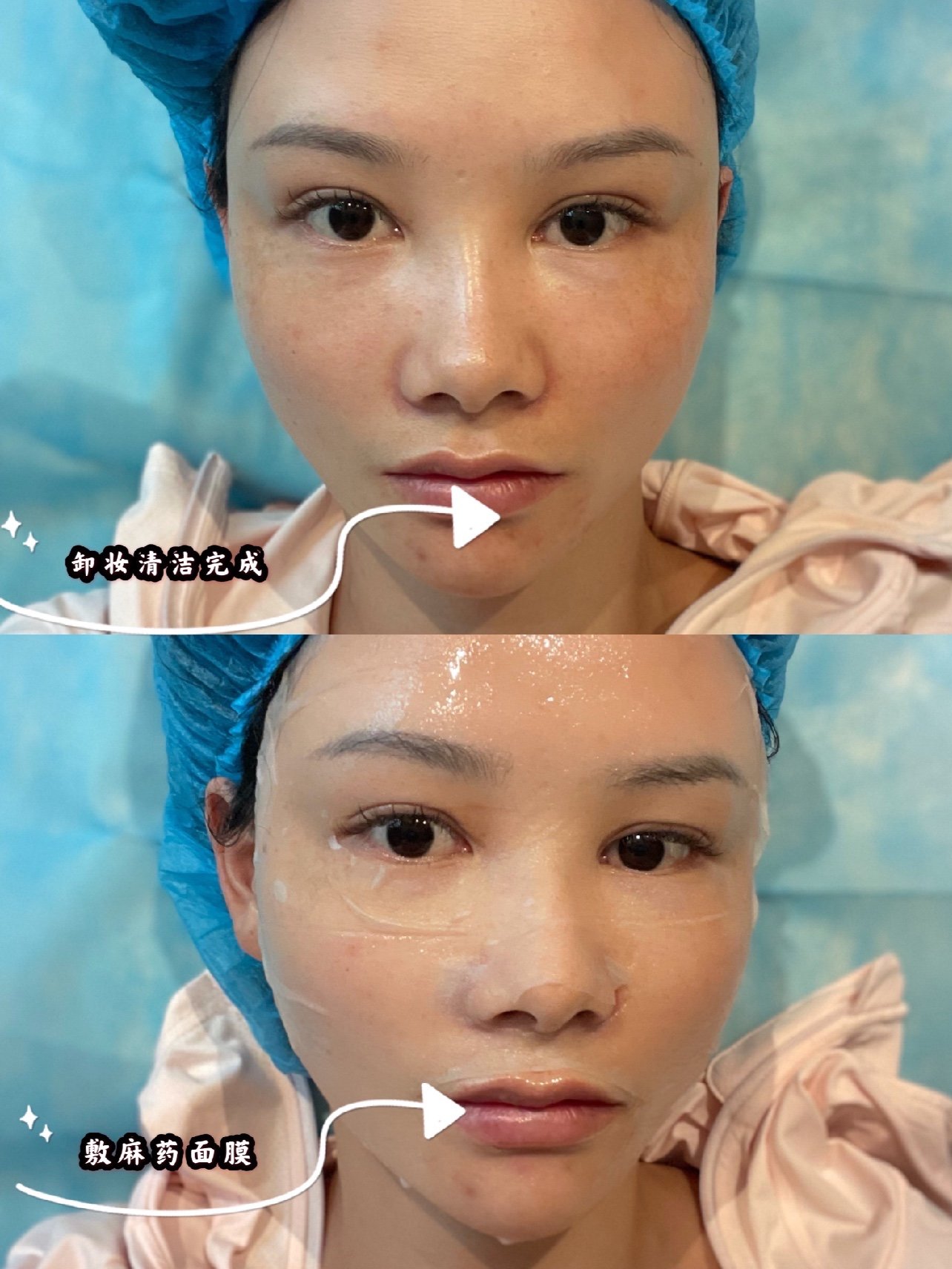 面诊结束后会有医助小姐姐带我去做皮肤清洁和敷麻药。这次的麻药跟我以前都都不同,他是面膜形式的不是涂抹的麻膏,对于我这种干皮来说大大的提高了舒适度。