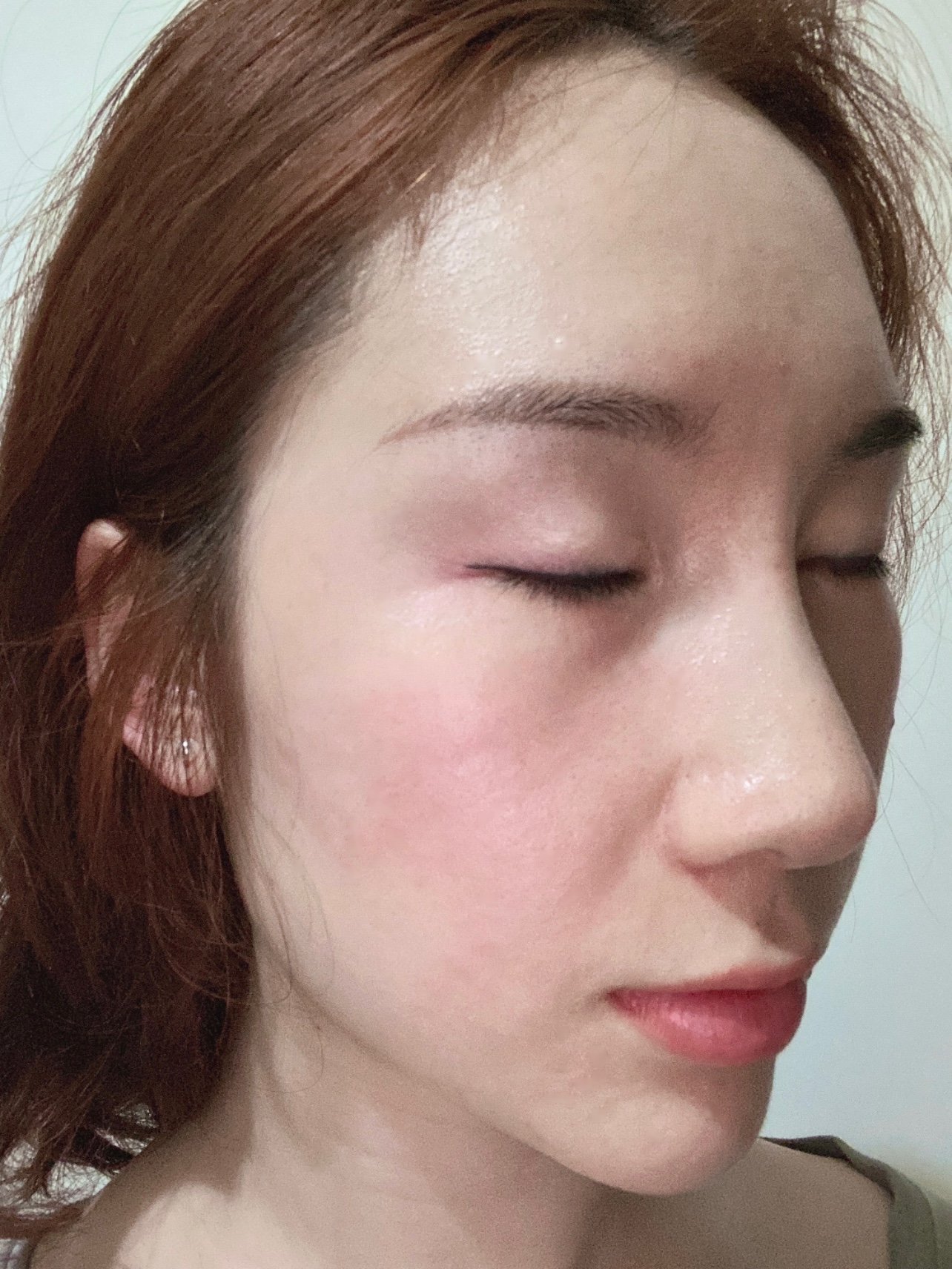 喷雾是双喷头,喷出来的雾非常细,能照顾到整张脸,有一股淡淡的很舒服温柔的香味。精华液是透明的水凝胶状,流动性很强,非常水润,如图5。上脸之后没有刺激性,没有不适感。使用后的皮肤状态如图6。