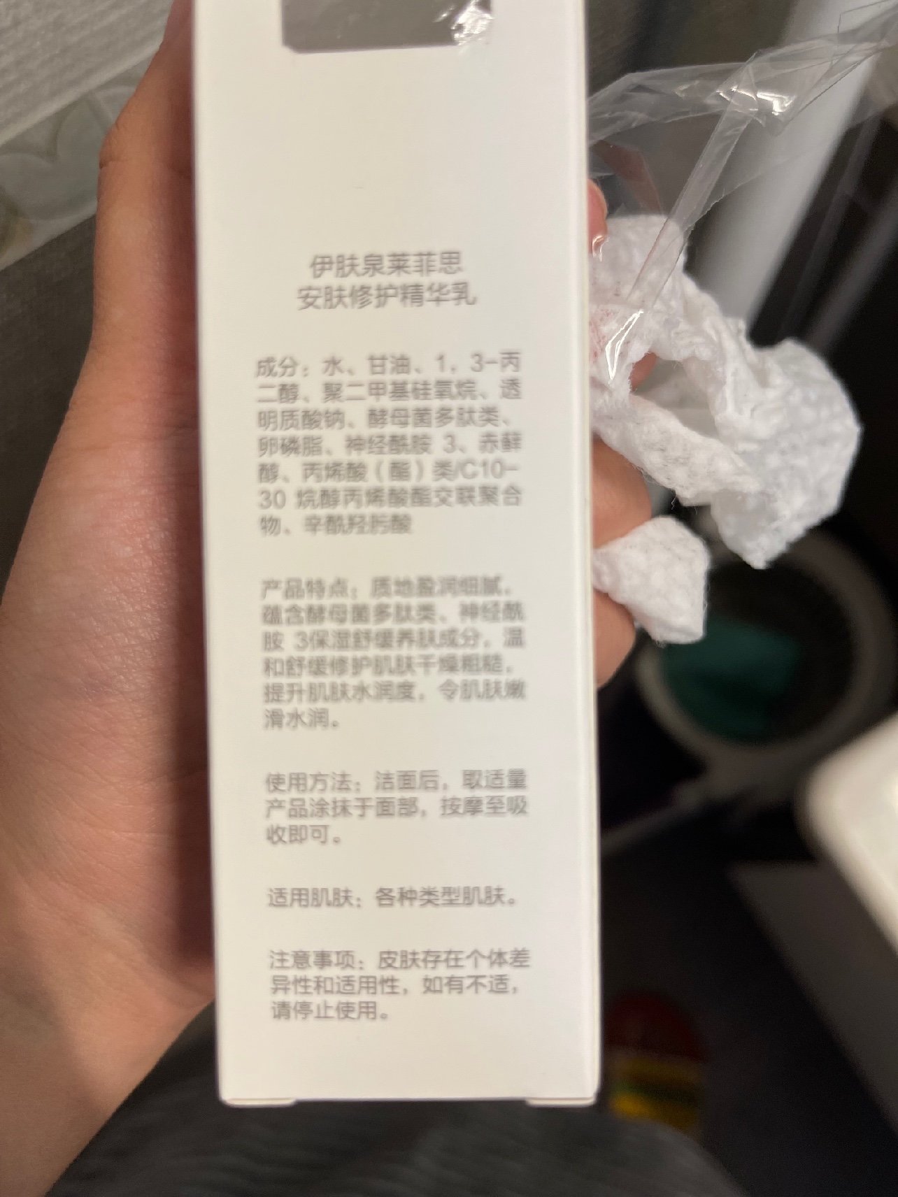安肤修复乳液:对我来说滋润度还是不错的也不是那么的油腻,早上晚上都可以使用,成分里的酵母多肽类,神经酰胺3都是很好的修复成分,能有效的缓解皮肤干燥,补充水分!个人感受:这两款产品我连续使用了5天,痘痘得到了一定的缓解,皮肤的水润度也高了一些,如果你想要一款安全的补水修复面膜,相信我,选择伊肤泉