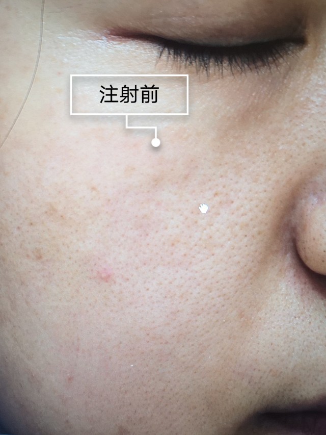 先介绍一下我的基础条件,本人的肤质是属于混油皮,T区出油挺严重的,而脸颊部位又很干,自认为是耐受力不错的城墙皮,但是注射前通过仪器检测显示皮肤还是会有轻微的炎症。因为年龄的关系,眼周的干纹也逐渐显露,法令纹也很让人头疼。