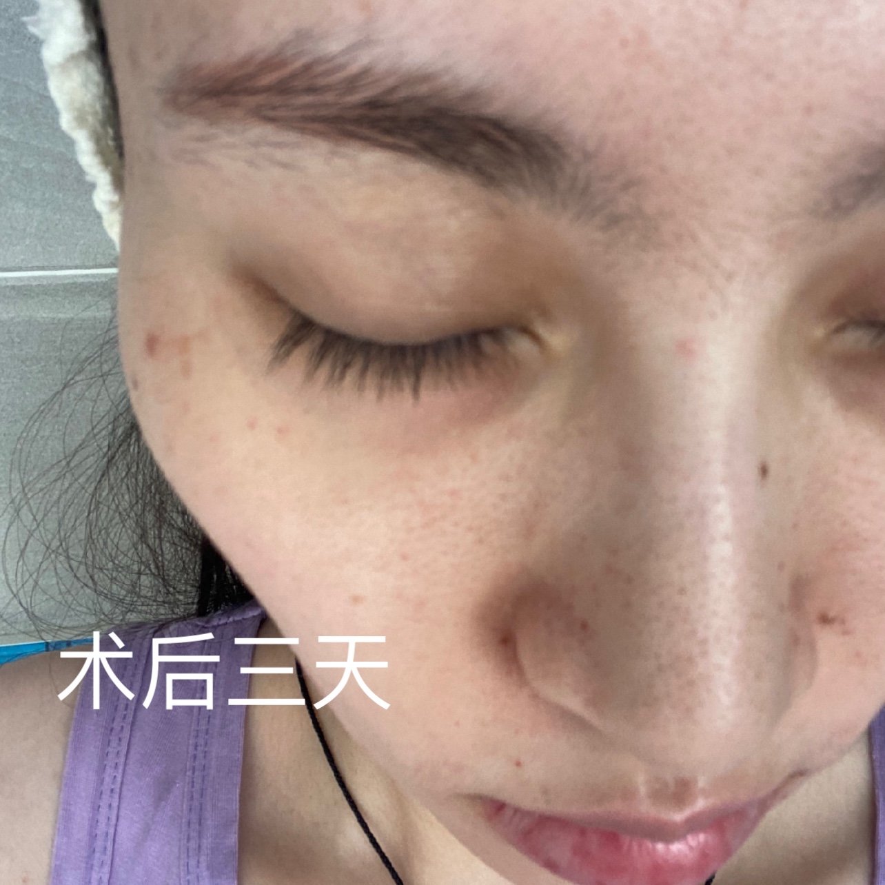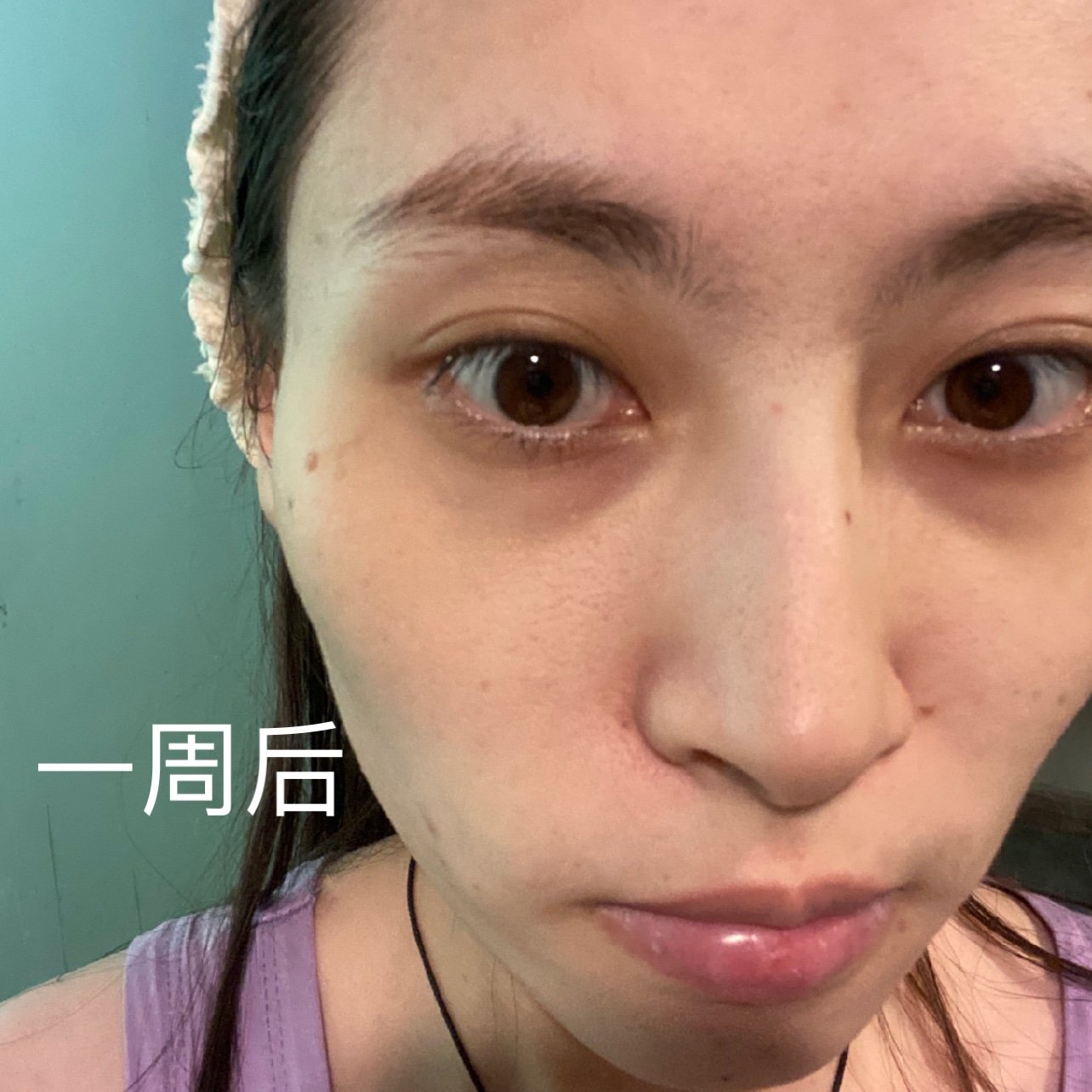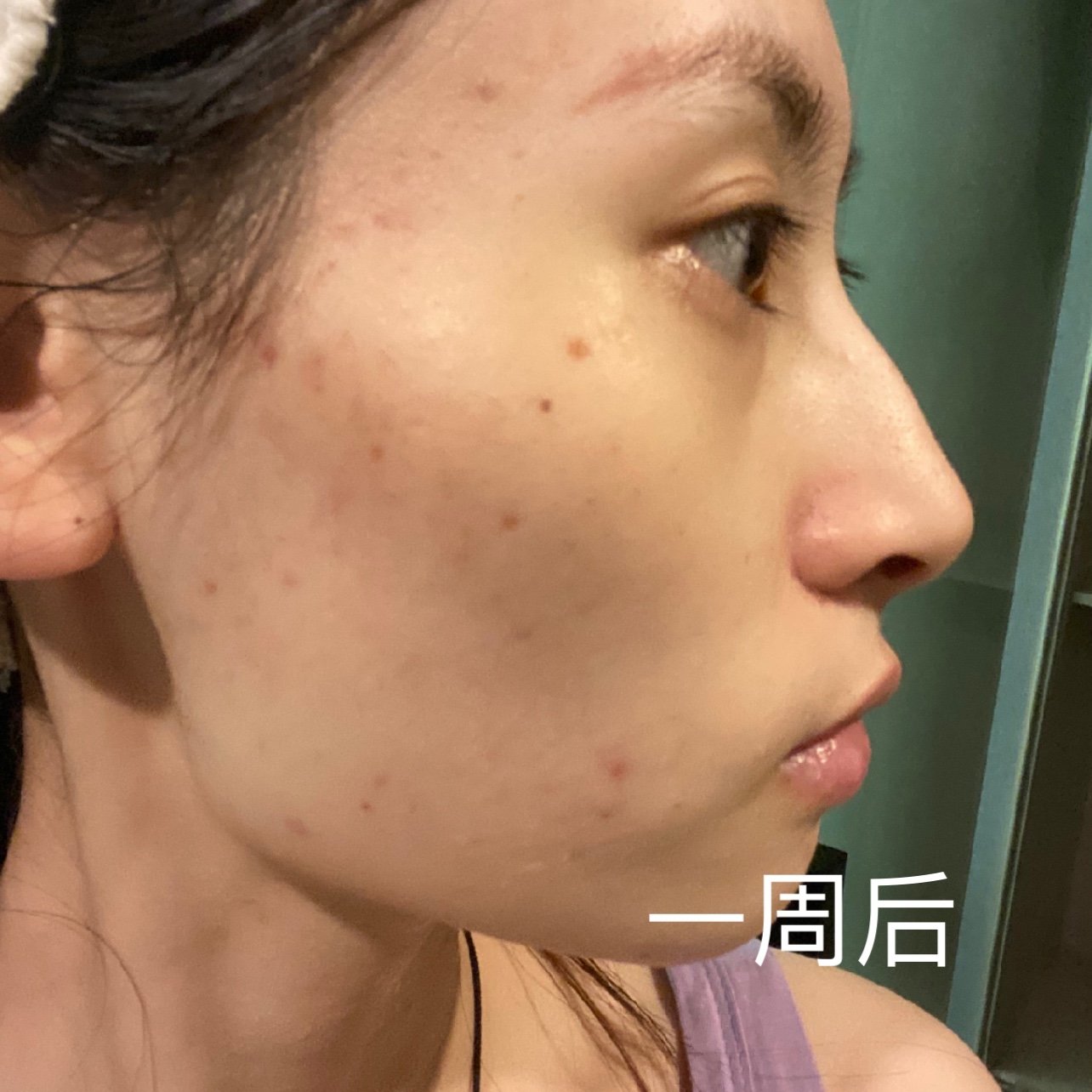 术前拍照片显示我皮肤有轻微的发炎,大夫说问题不大,但是这个产品太营养了让我做好回家可能爆痘的心理准备。还好并没有爆痘,而且之前手欠抠出来的痘印也淡了很多,lucky
